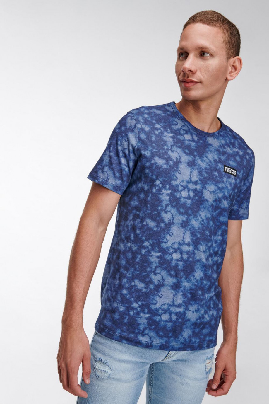 camiseta manga corta para hombre con estampado continuo y texto localizado