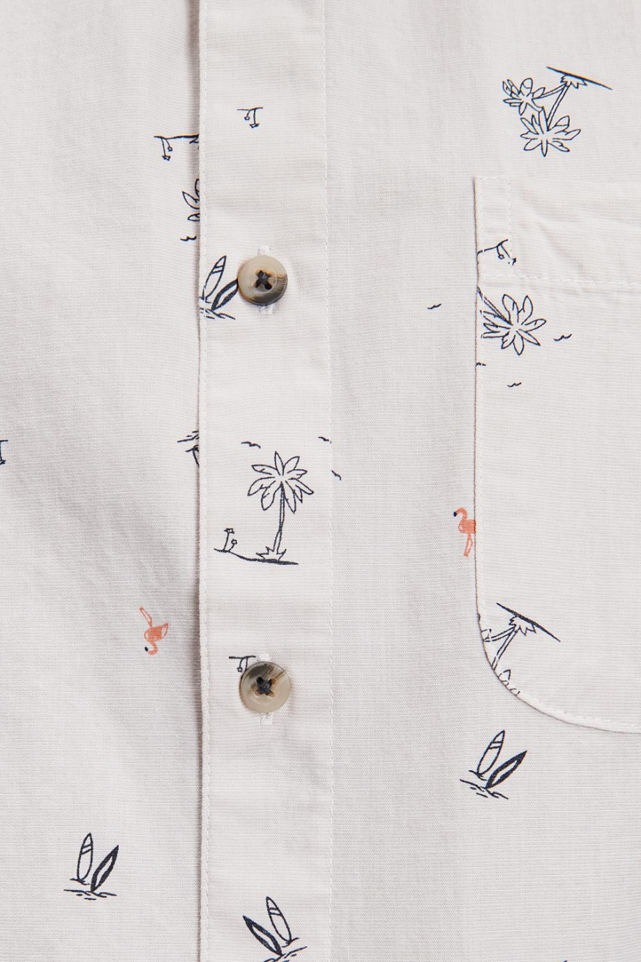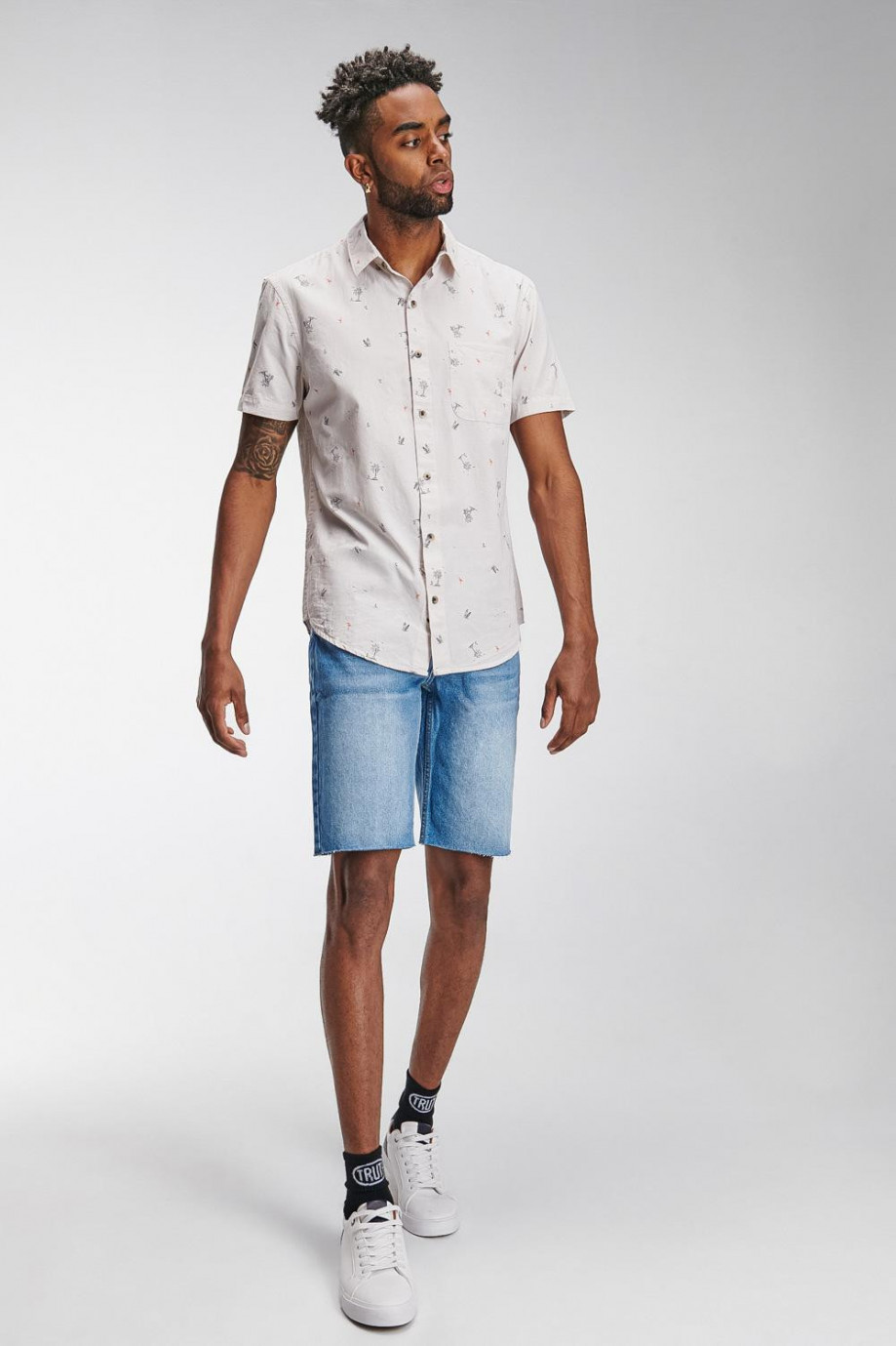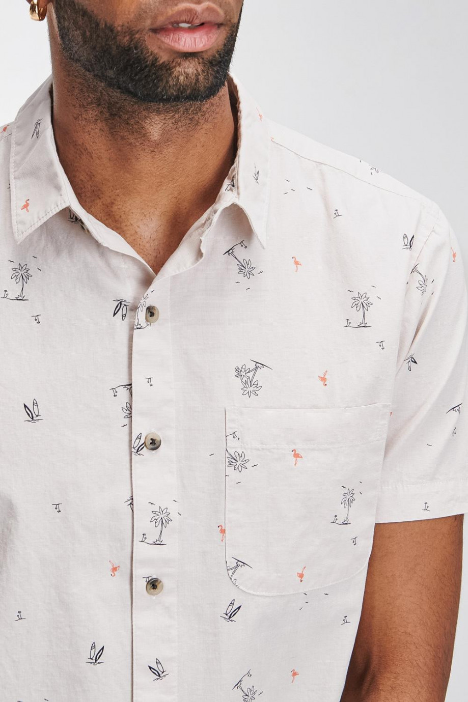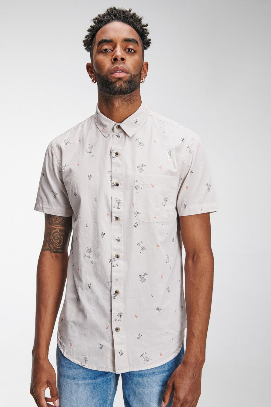 Camisa cuello sport collar manga corta con tela con mini print y botonadura en el frente.