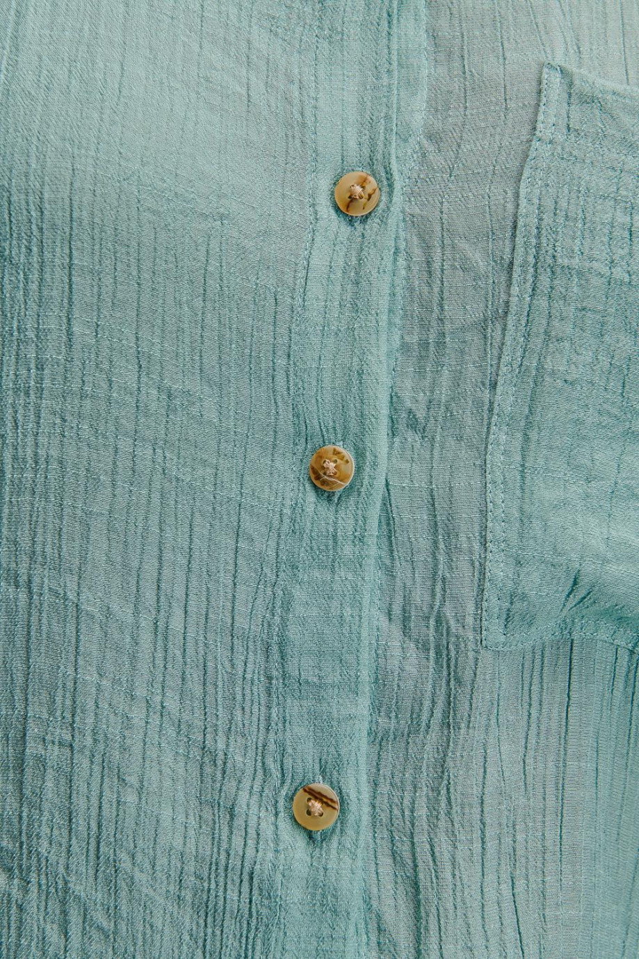 Blusa camisera unicolor, en tela fluida con doble bolsillo abertura en costados, abotonadura en frente.