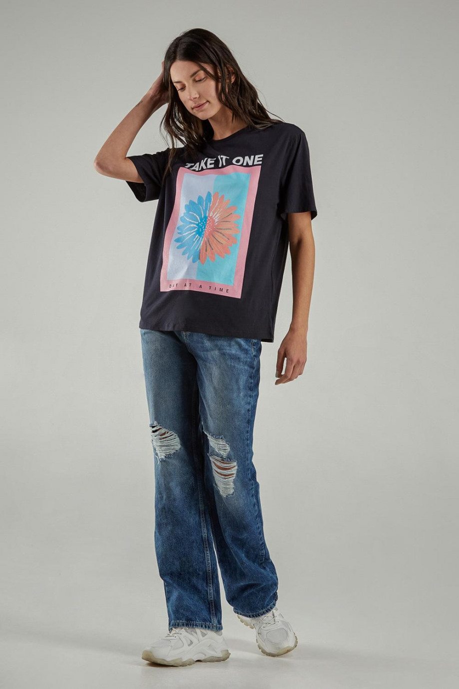Camiseta básica manga corta estampada.