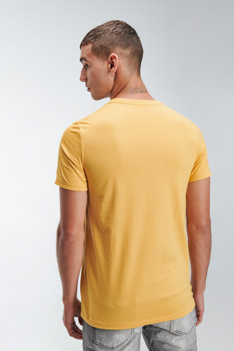 Camiseta básica para hombre cuello redondo manga corta con estampado en frente.