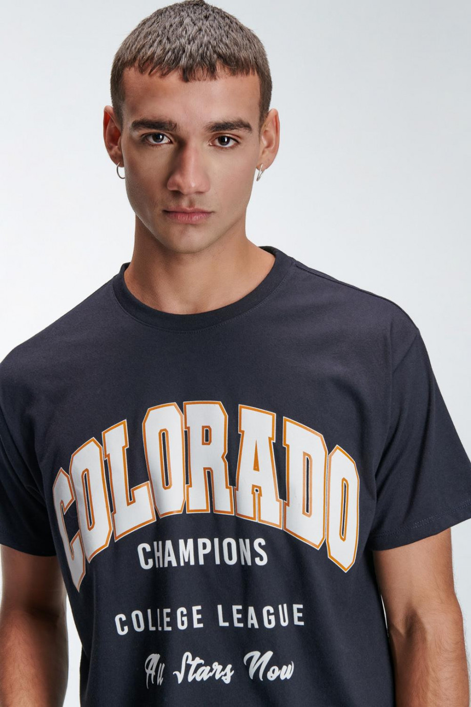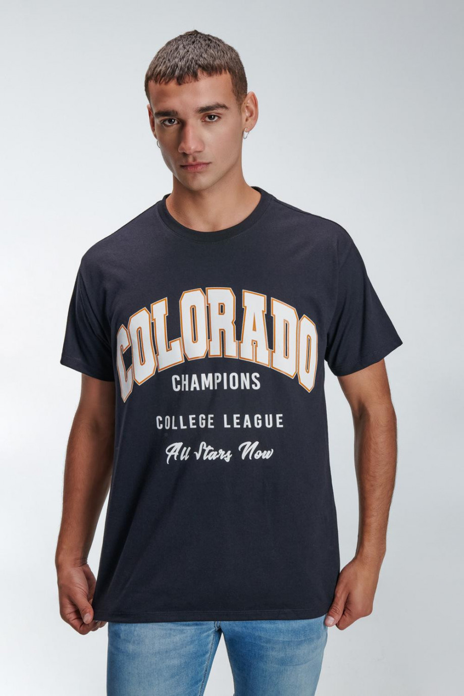 Camiseta oversize, para hombre manga corta, cuello redondo con estampado localizado en frente.