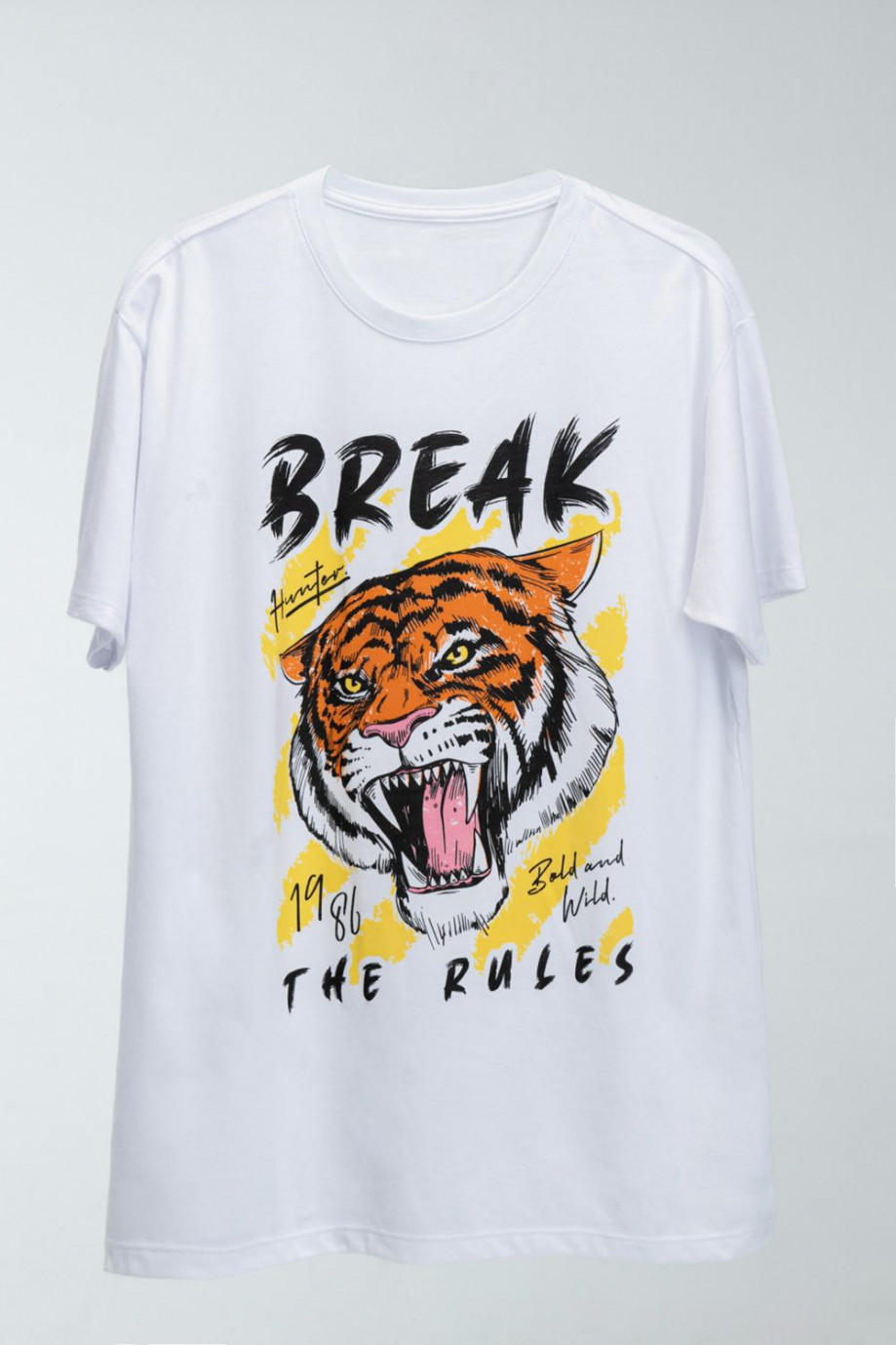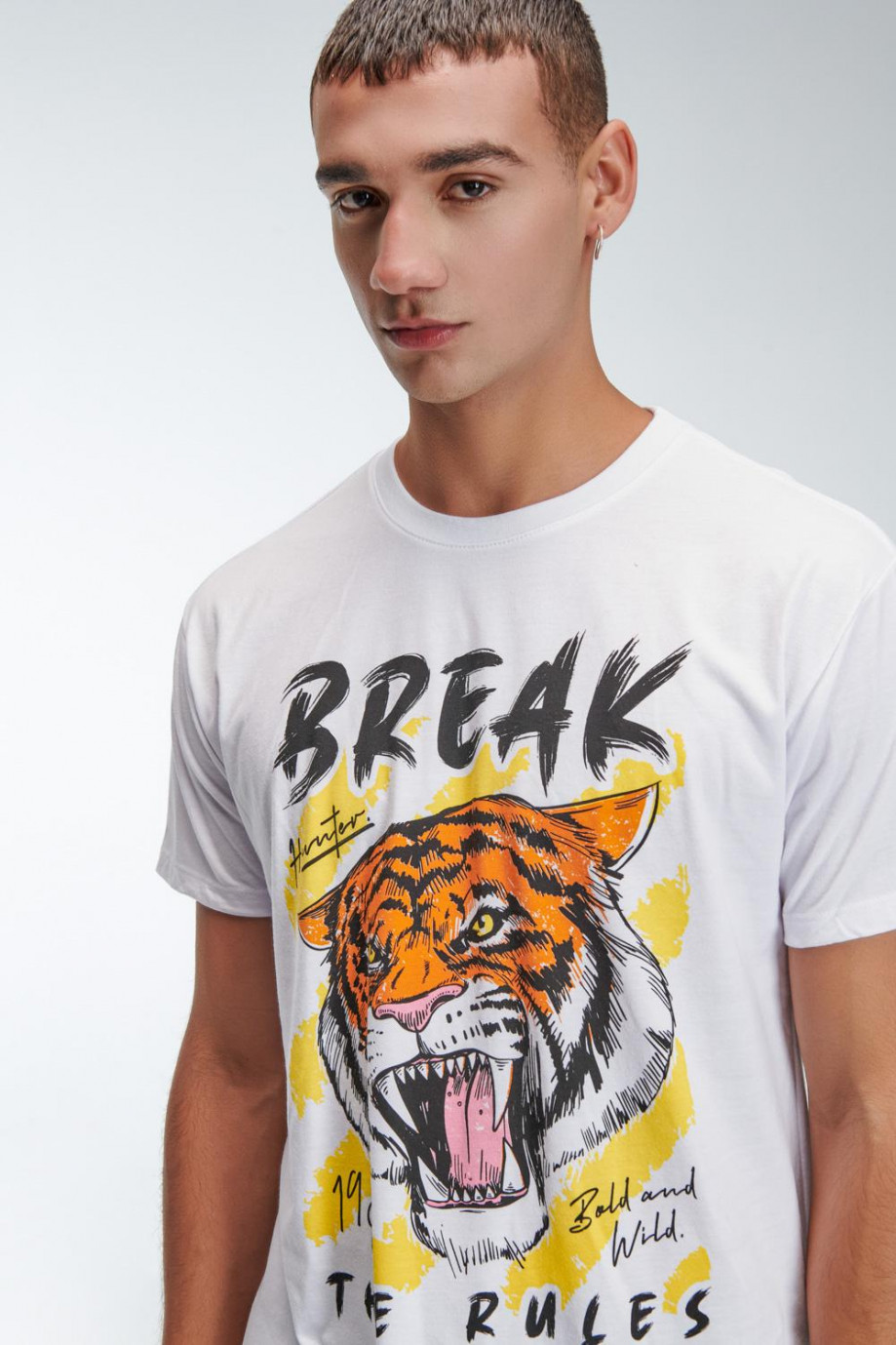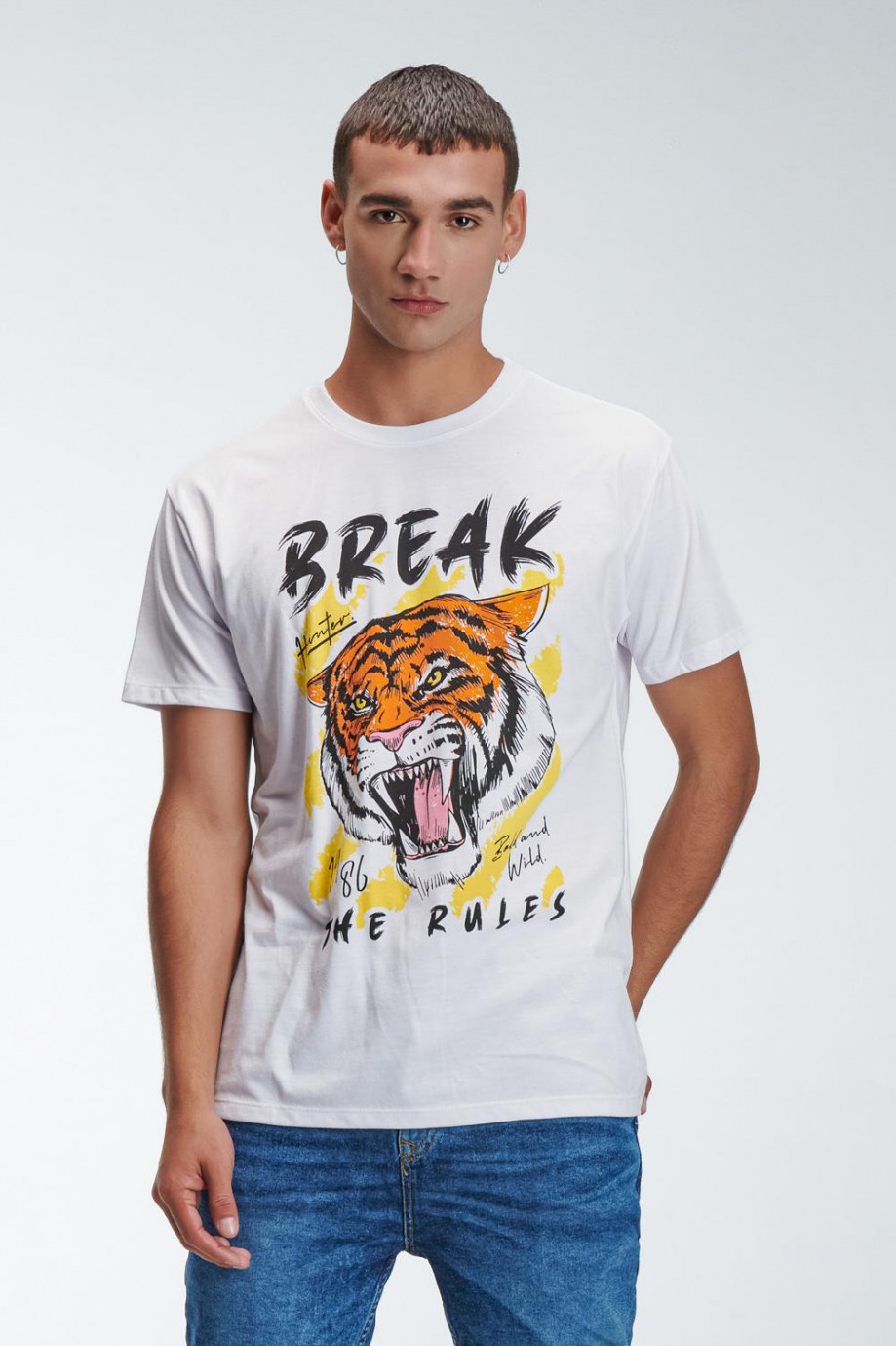 Camiseta oversize, para hombre manga corta, cuello redondo con estampado localizado en frente.