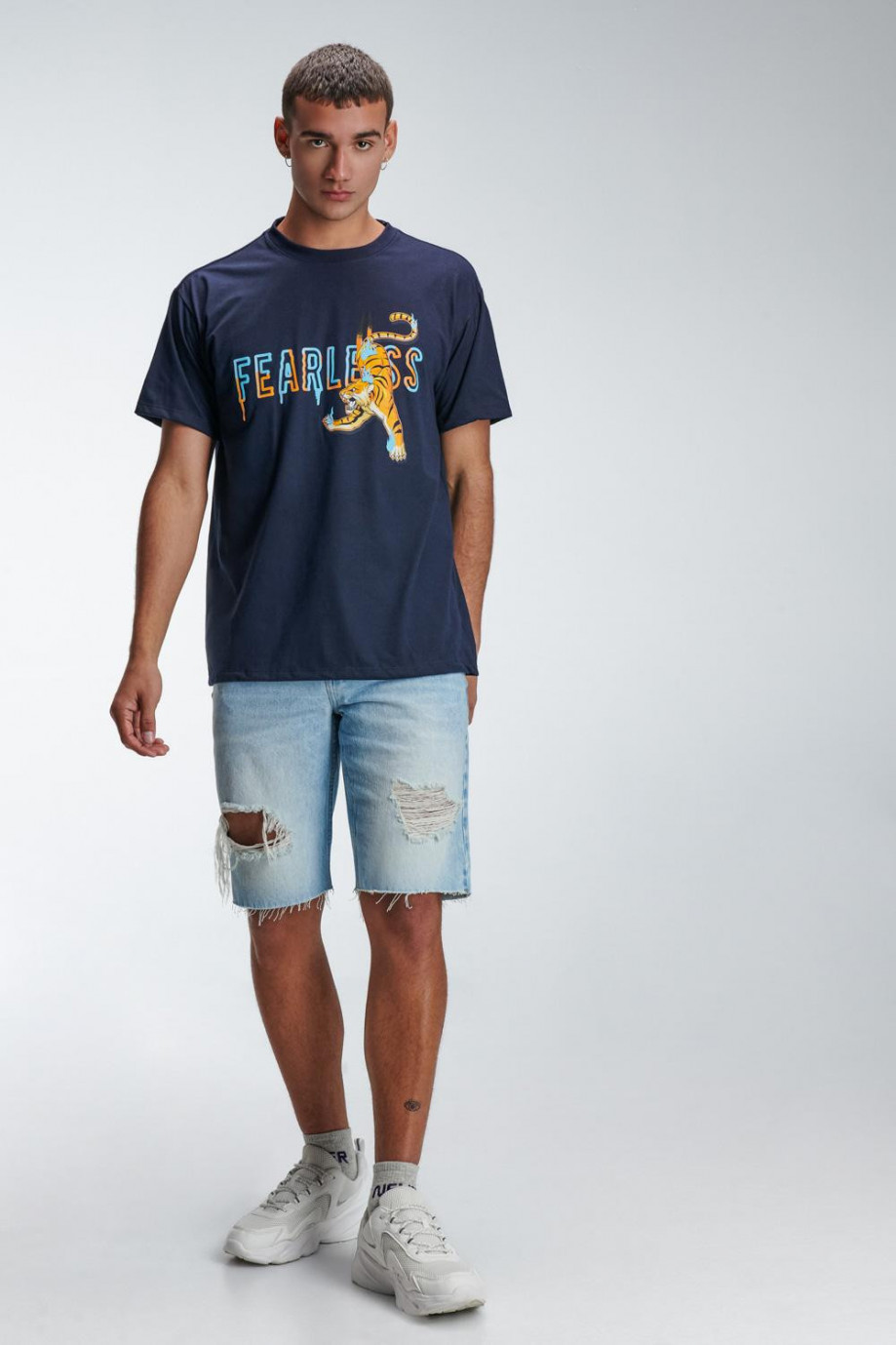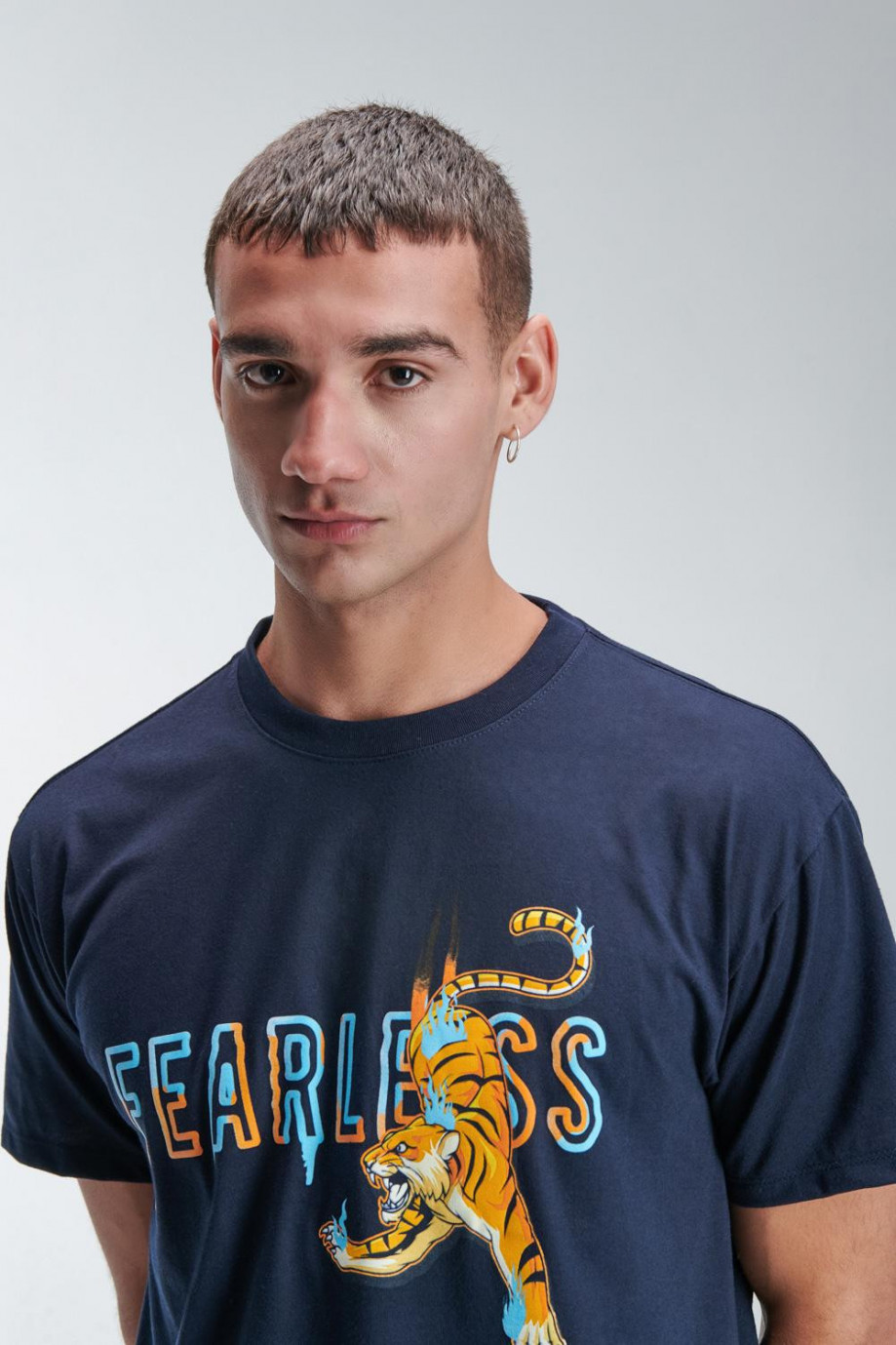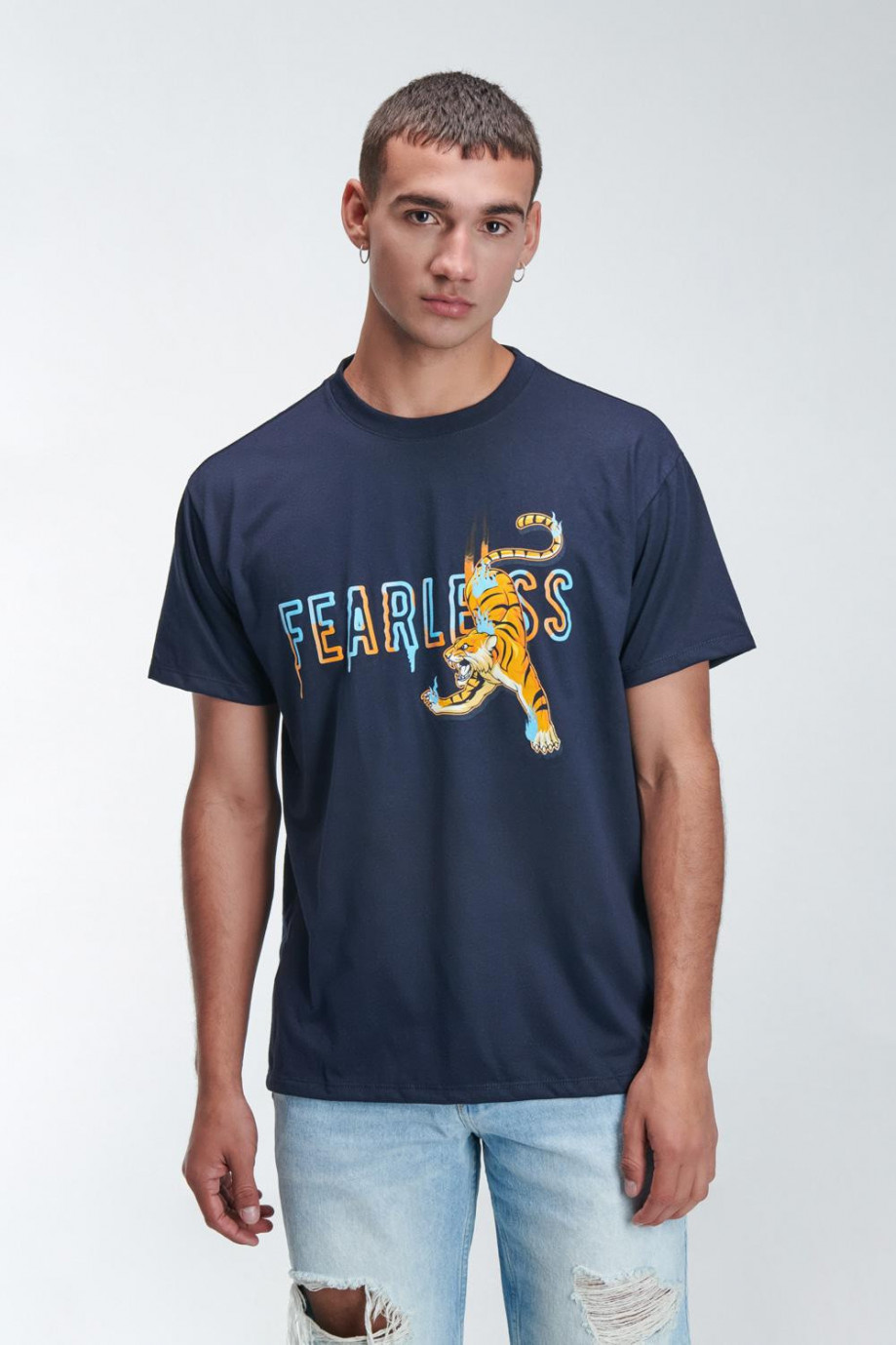 Camiseta oversize, para hombre manga corta, cuello redondo con estampado localizado en frente