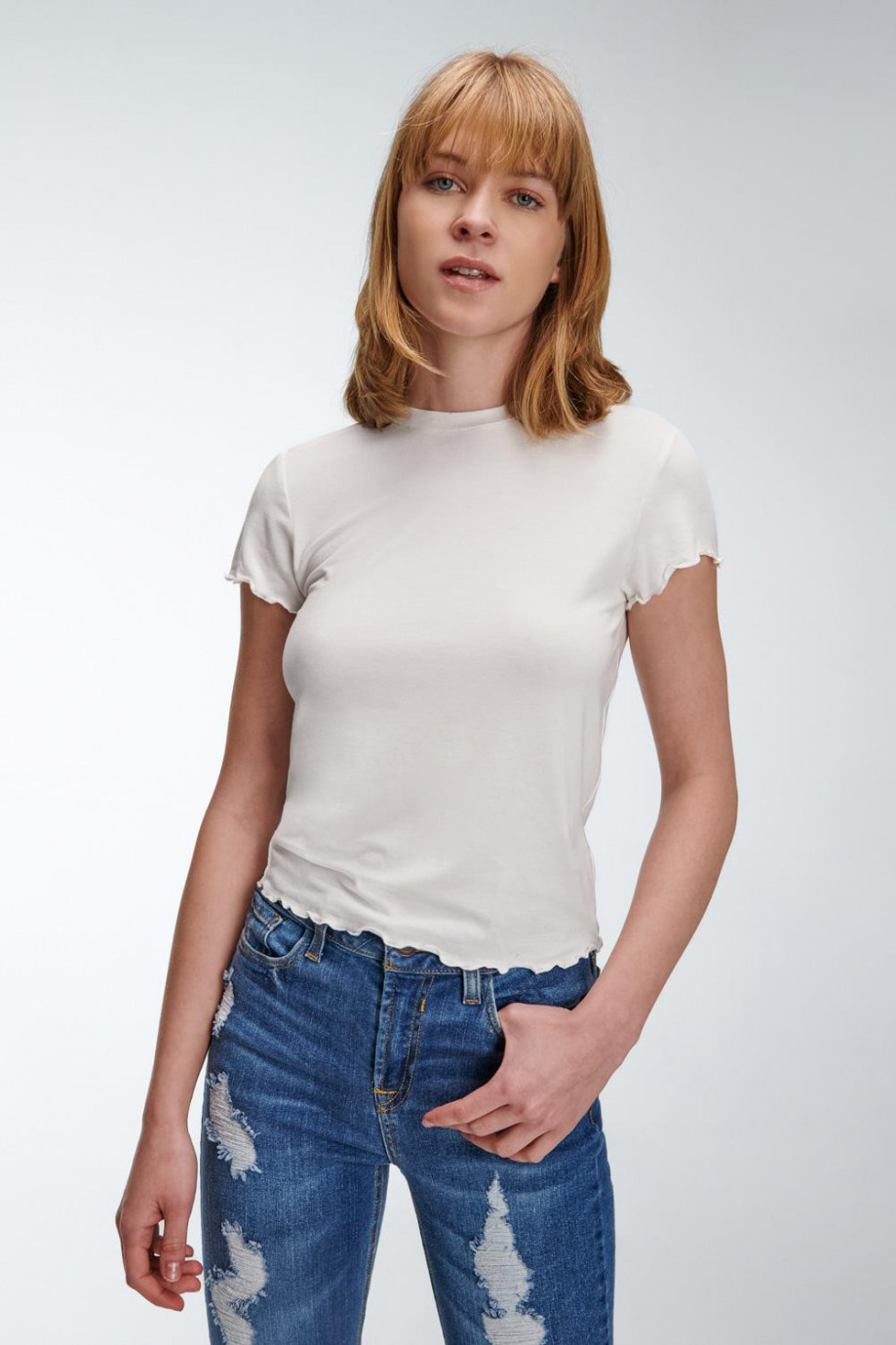 Camiseta, manga corta, cuello redondo, unicolor.