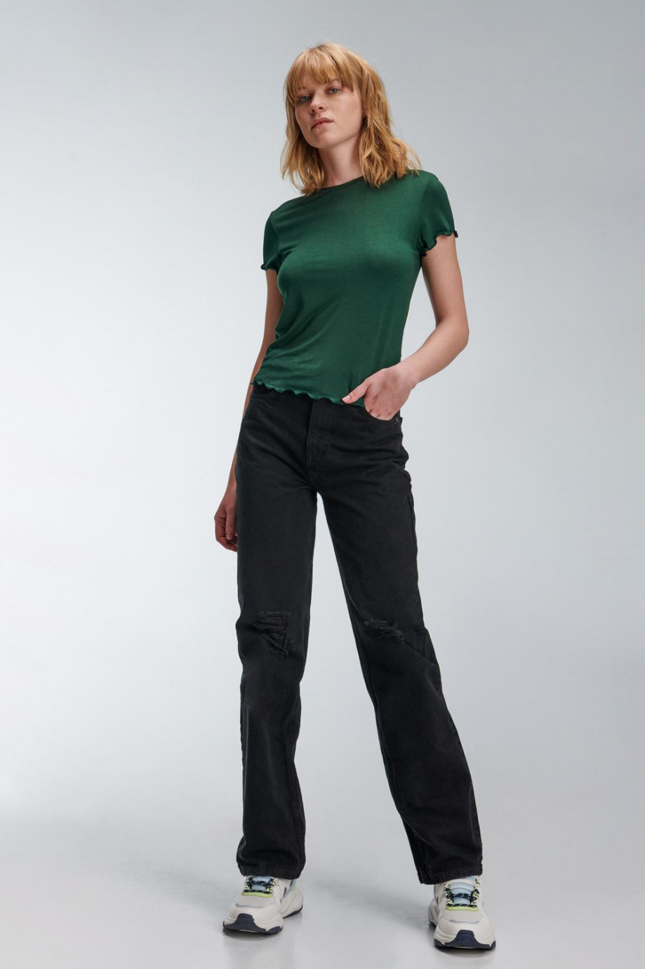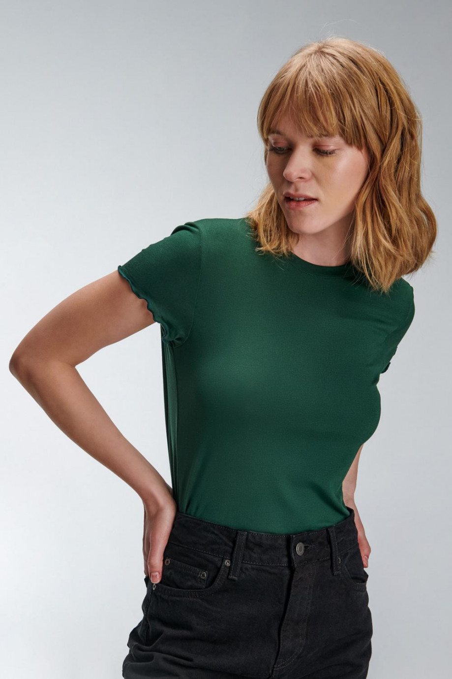 Camiseta para mujer, manga corta, cuello redondo, unicolor.