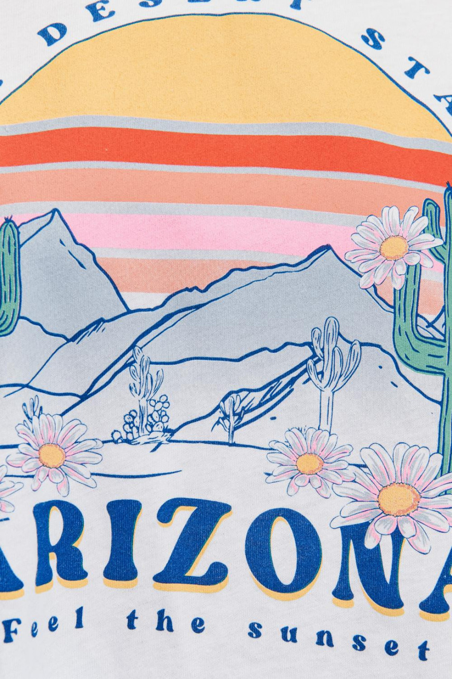 Camiseta para mujer manga corta con cuello y mangas en contraste, estampada en frente, Arizona.