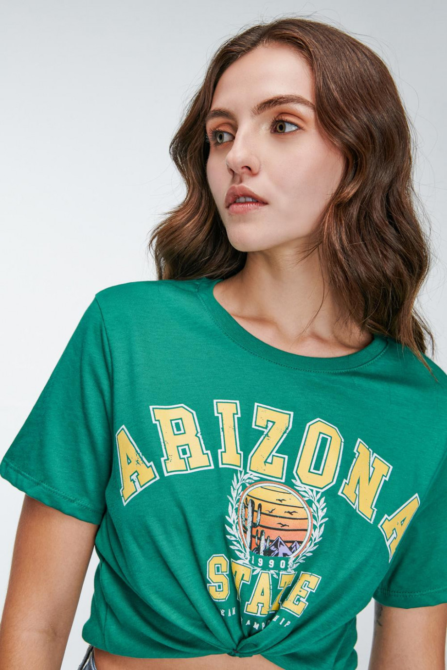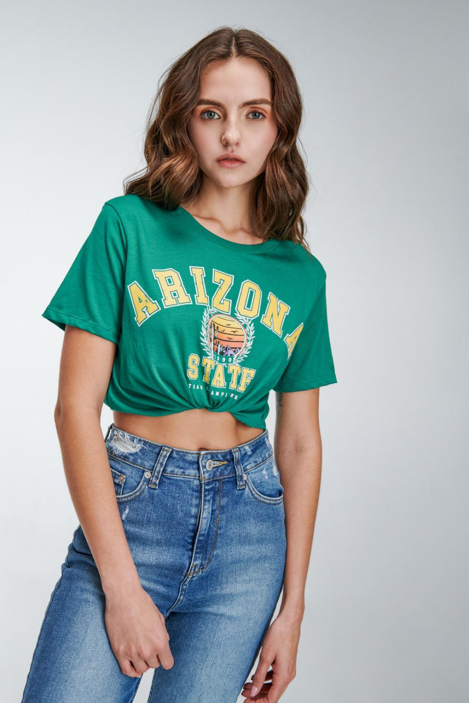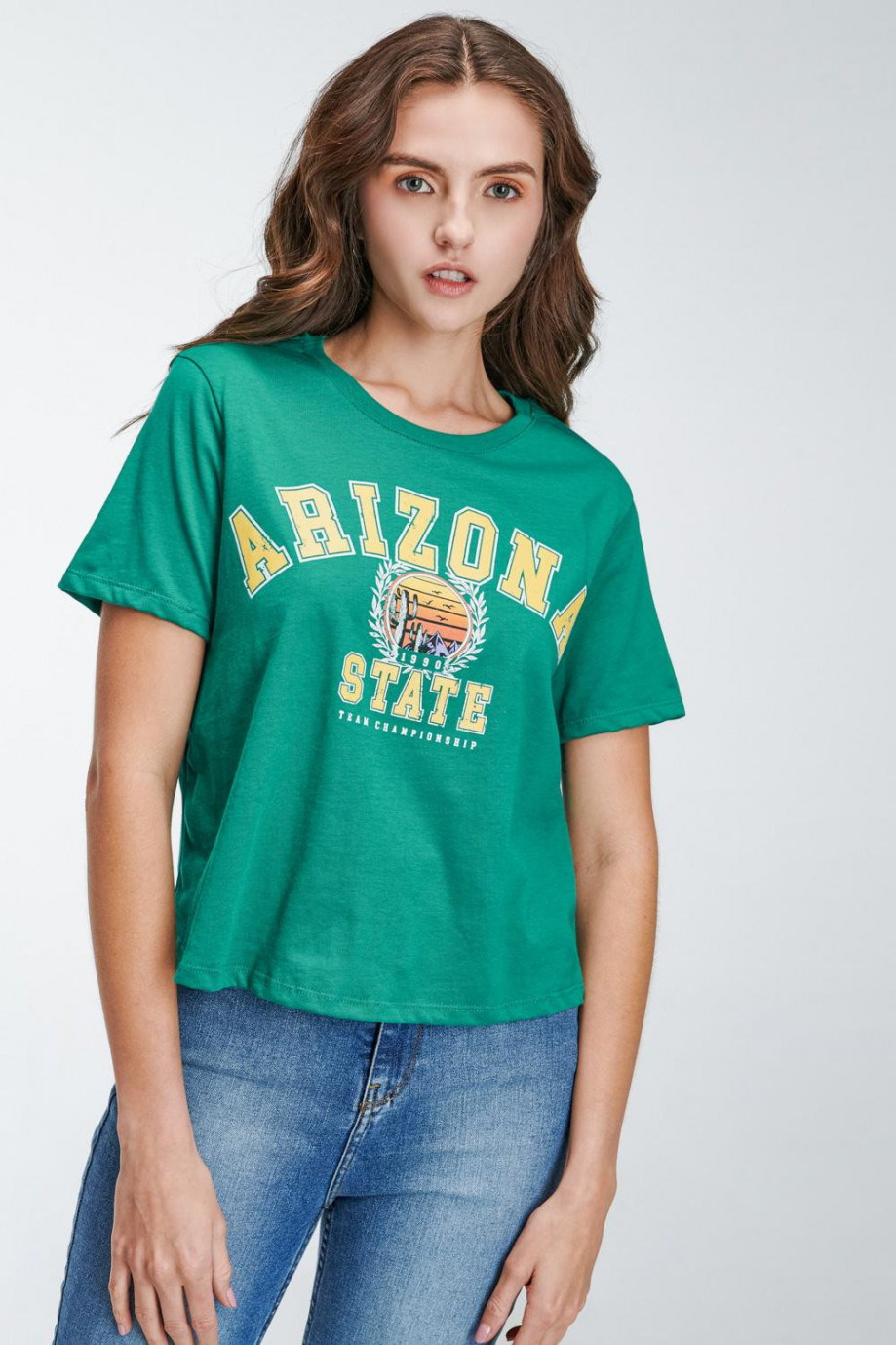 Camiseta básica para mujer manga corta, estampada en frente.