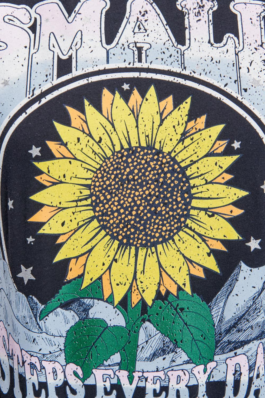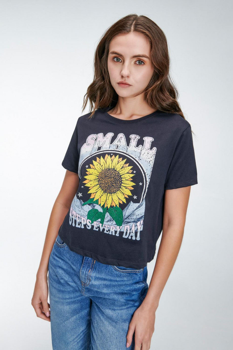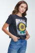 Camiseta básica para mujer manga corta, estampada flores con detalles de brillo.