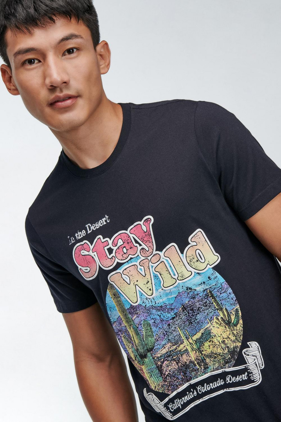 Camiseta básica para hombre manga corta, estampada en frente, paisajes.