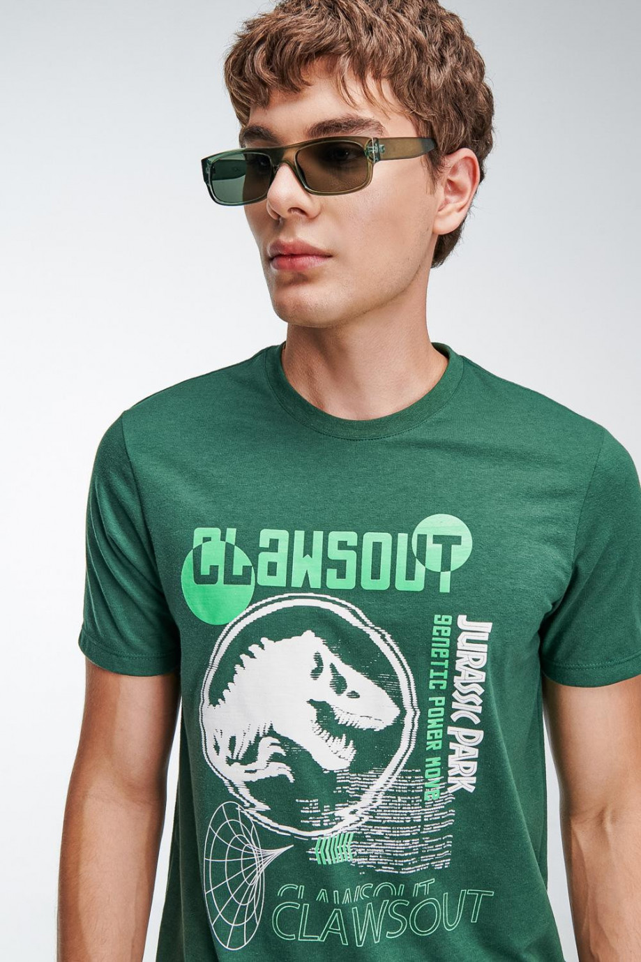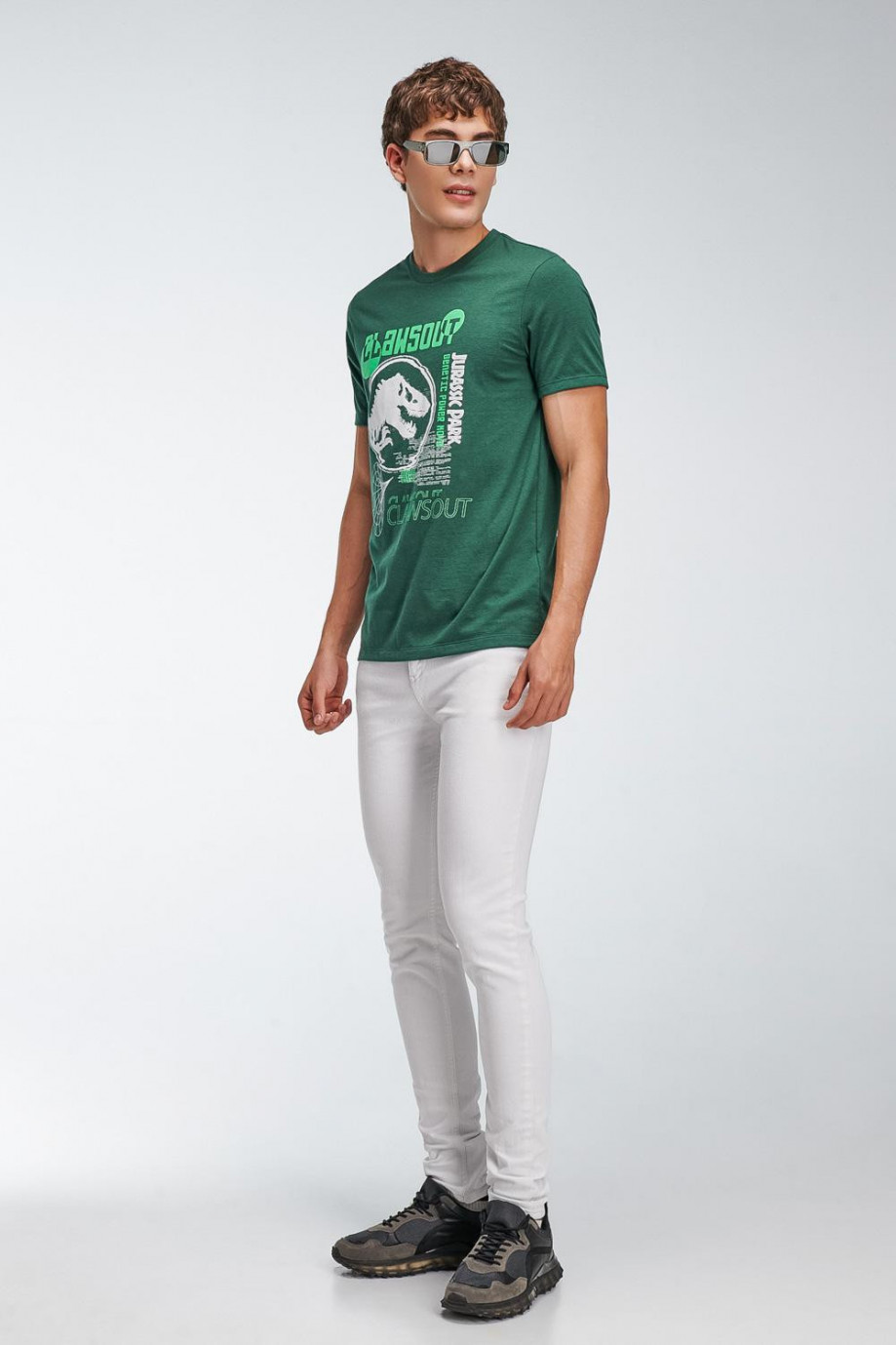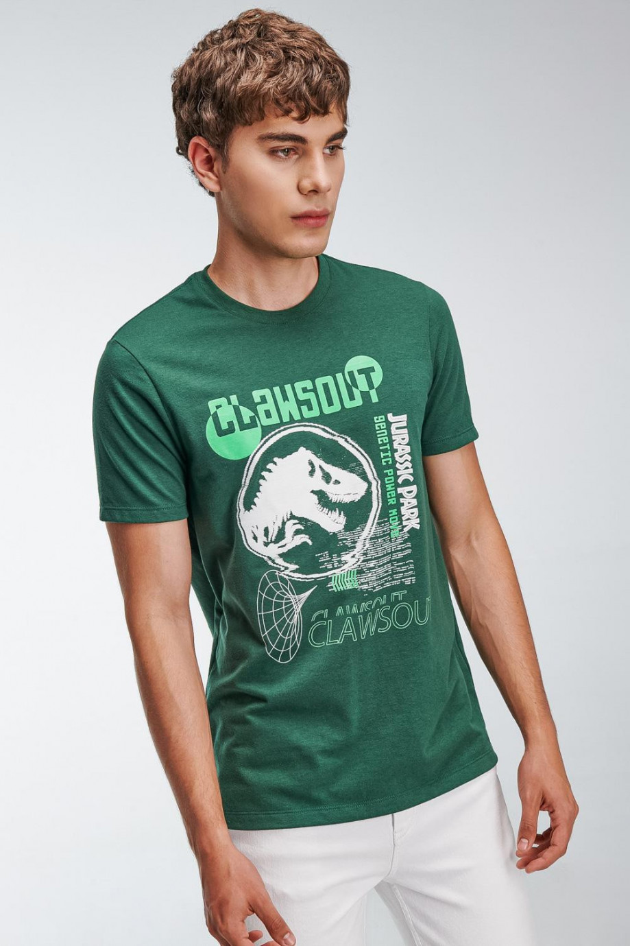 Camiseta para hombre manga corta, estampado en frente de Jurassic Park.