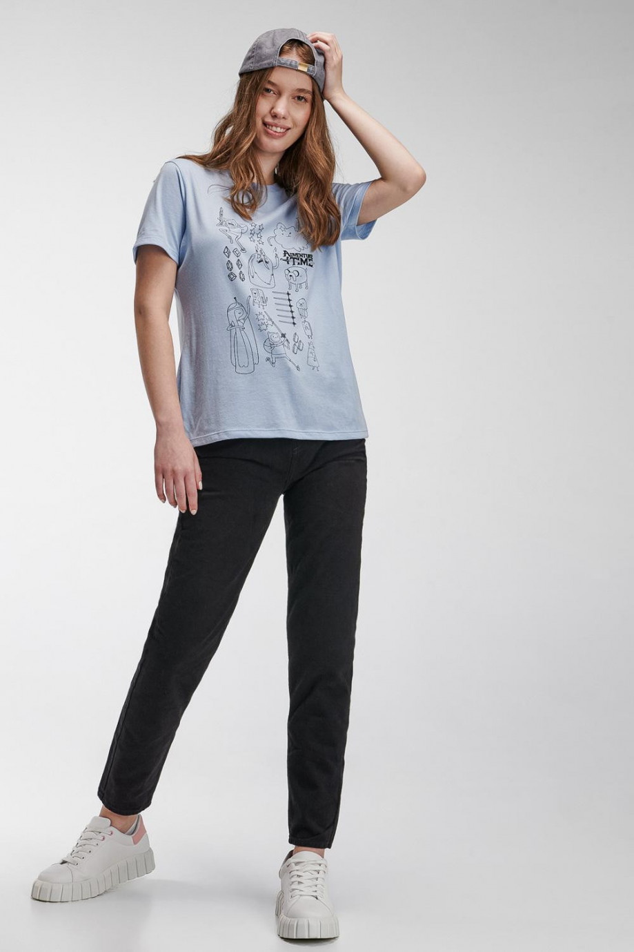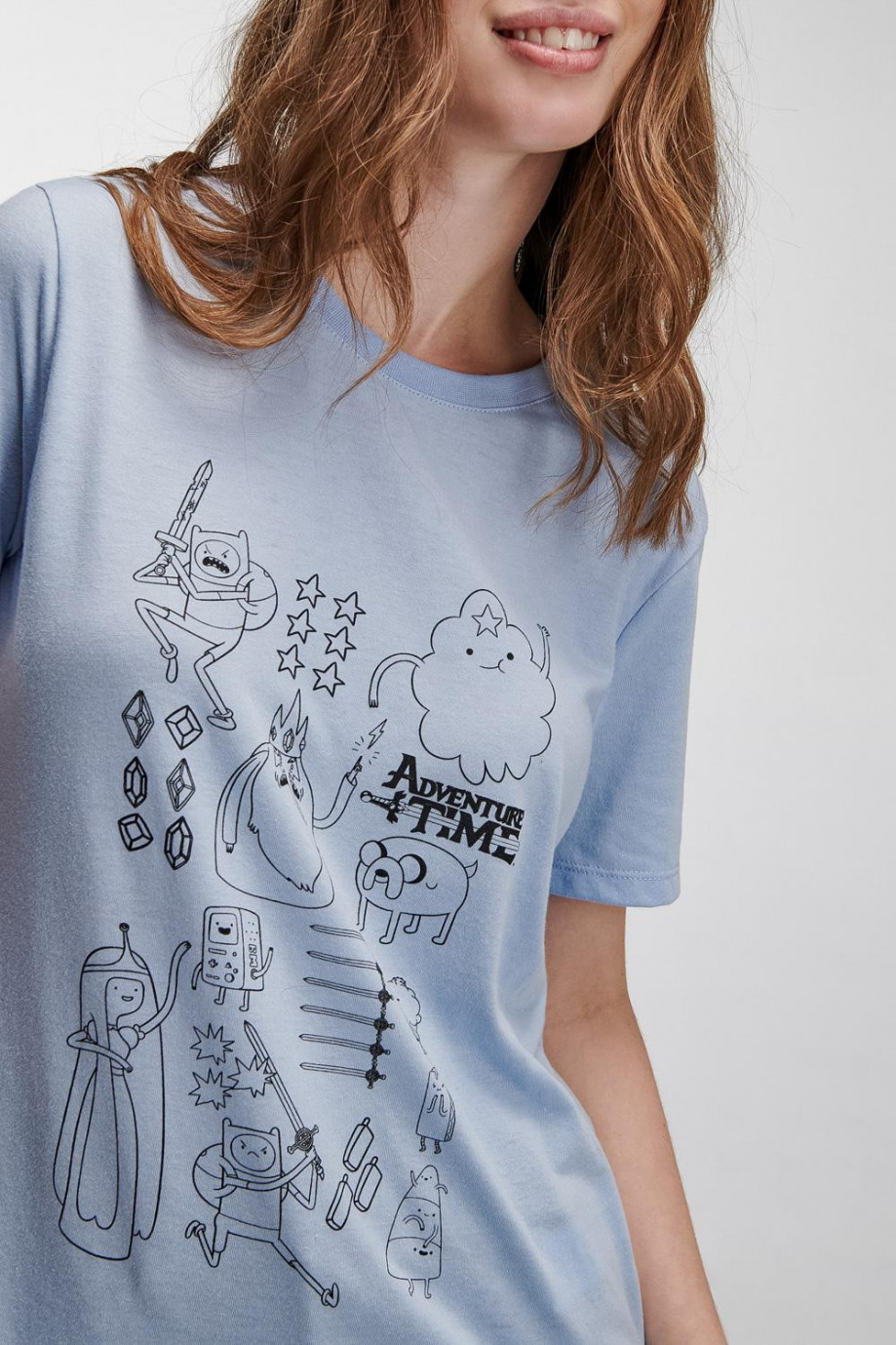Camiseta, para mujer, manga corta, con estampado de los personajes en frente, de Hora de Aventura.