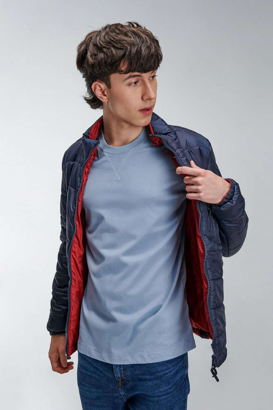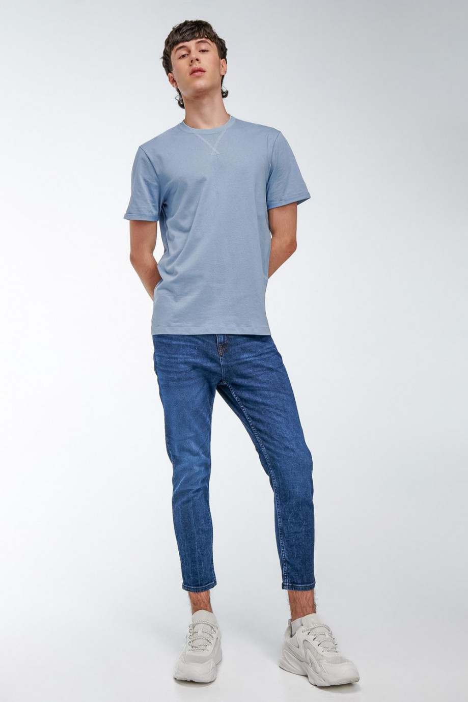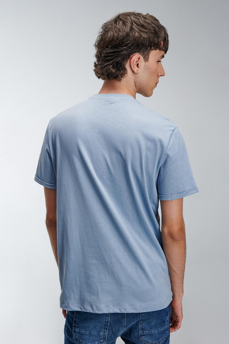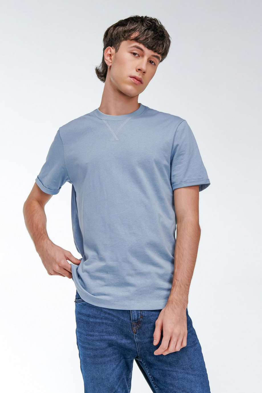 Camiseta manga corta, unicolor para hombre con costura decorativa en cuello frente.