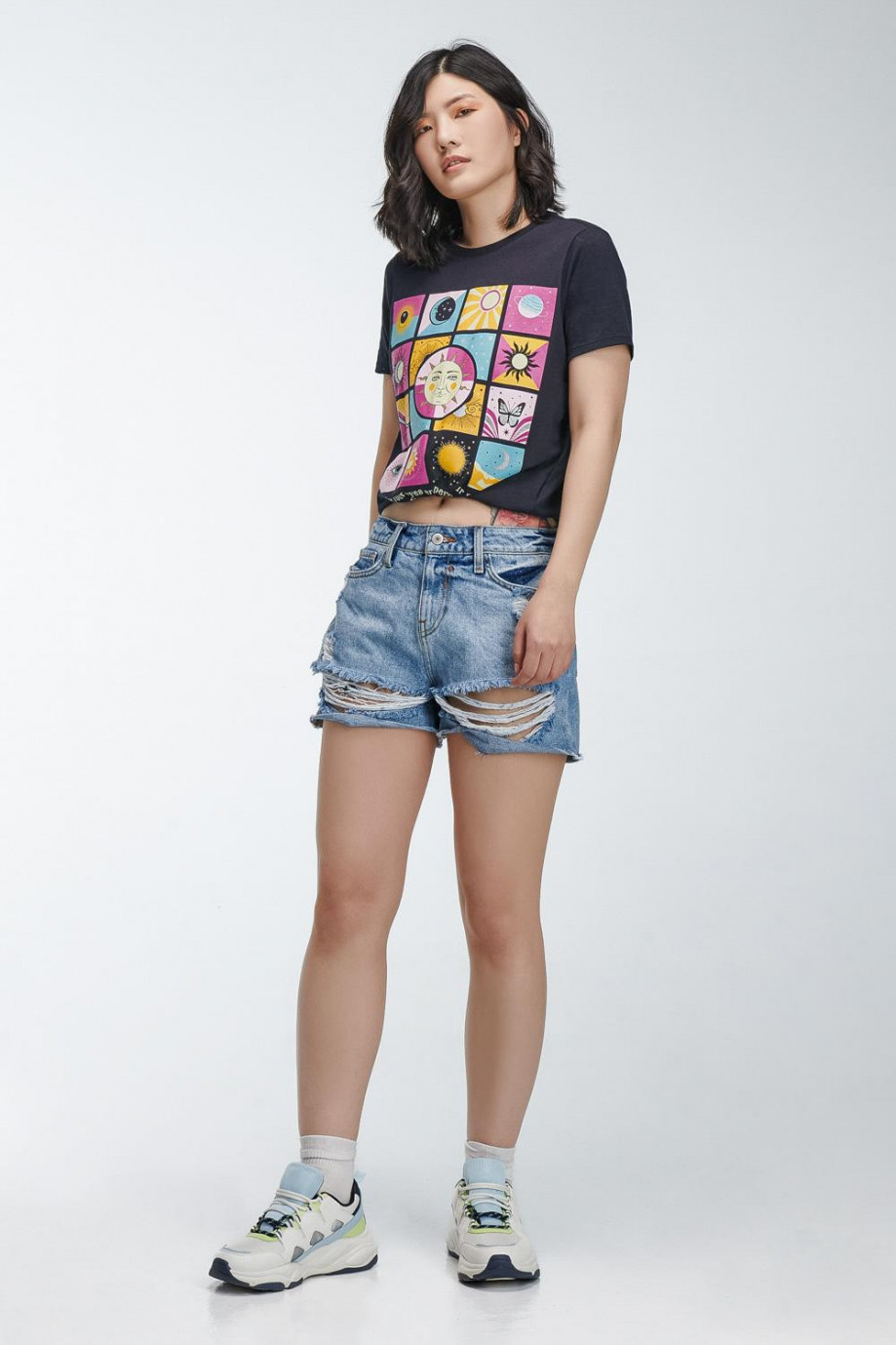 Camiseta básica para mujer manga corta, estampado mistico con detalles brillantes.