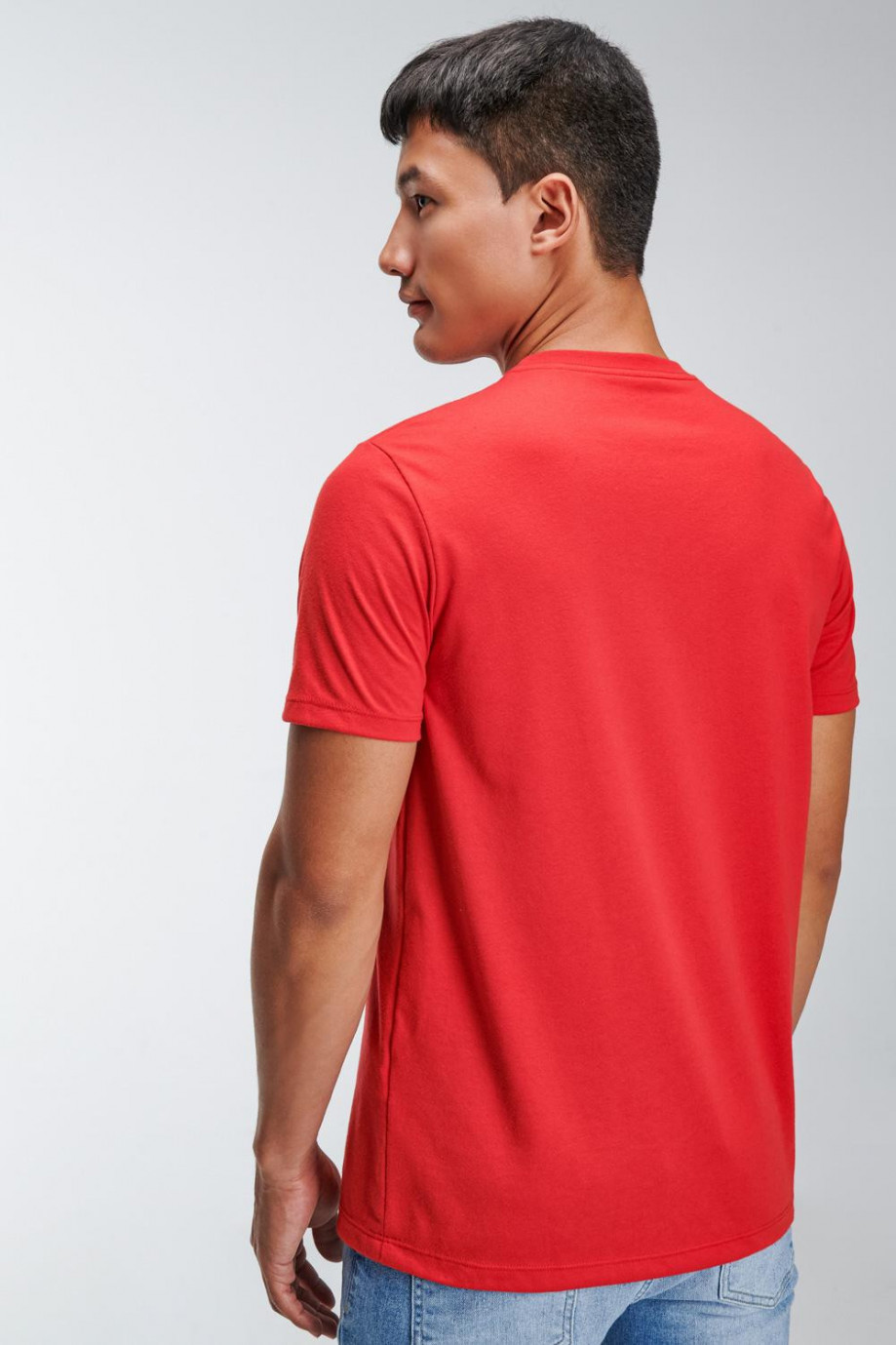 Camiseta básica para hombre, cuello redondo en Rib, manga corta y estampado sobre el frente.