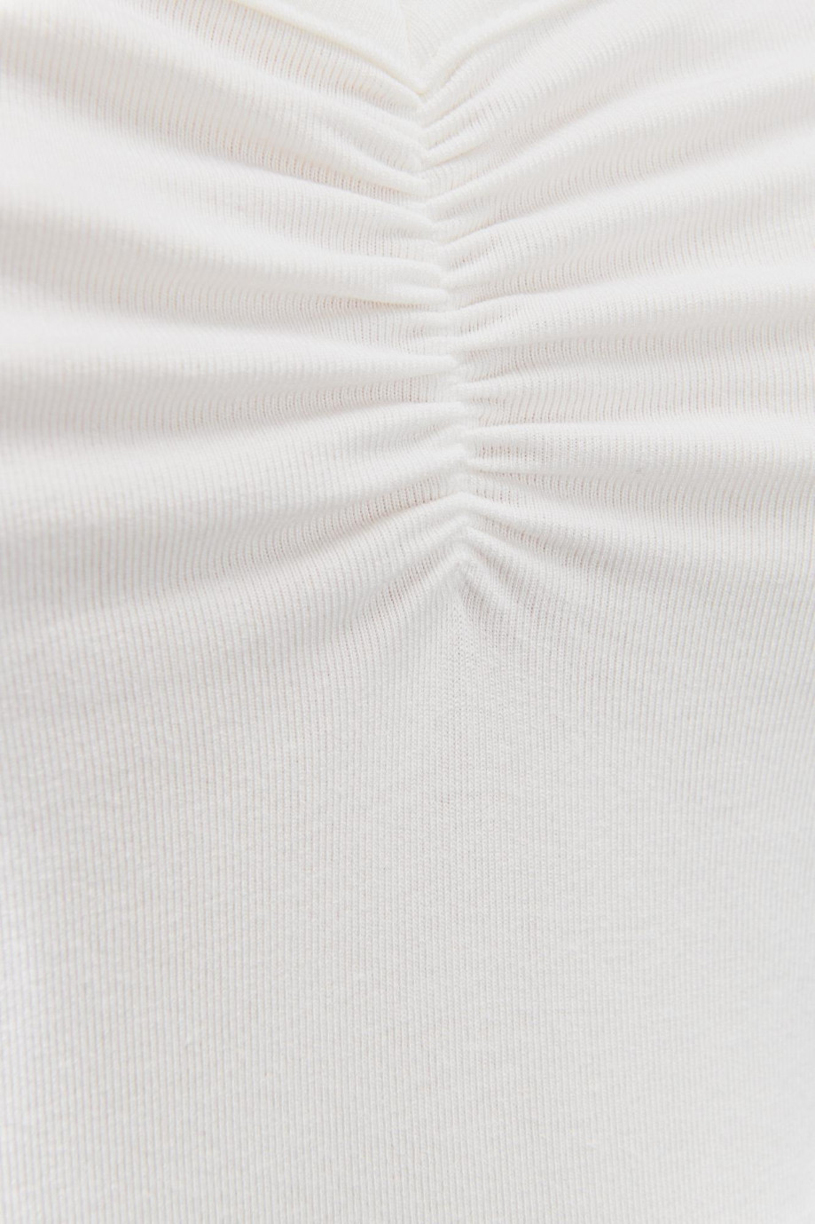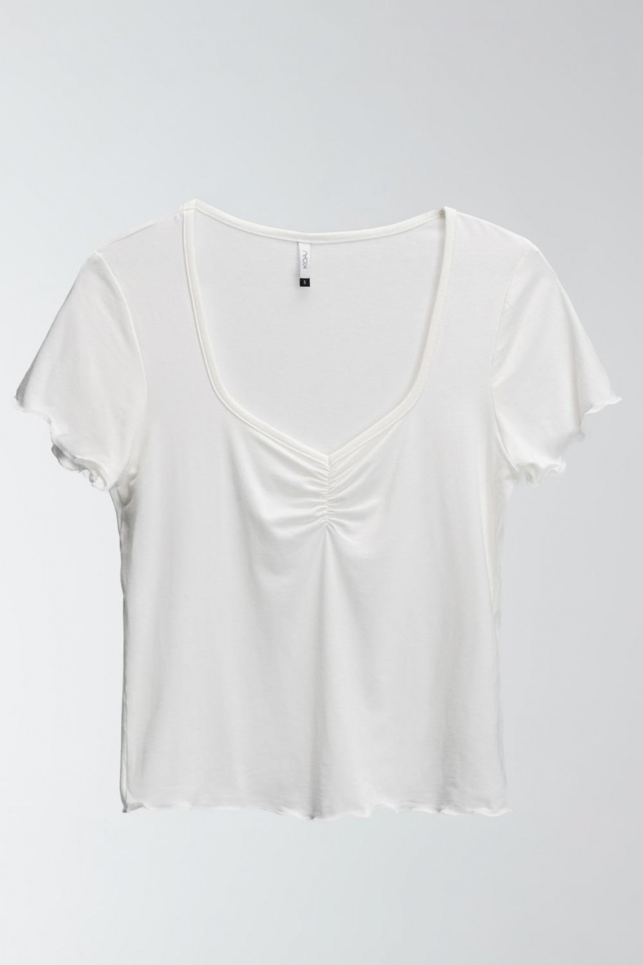 Camiseta para mujer, cuello en v con recogido, manga corta.