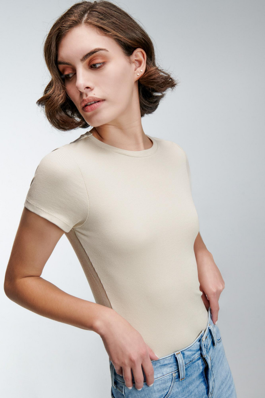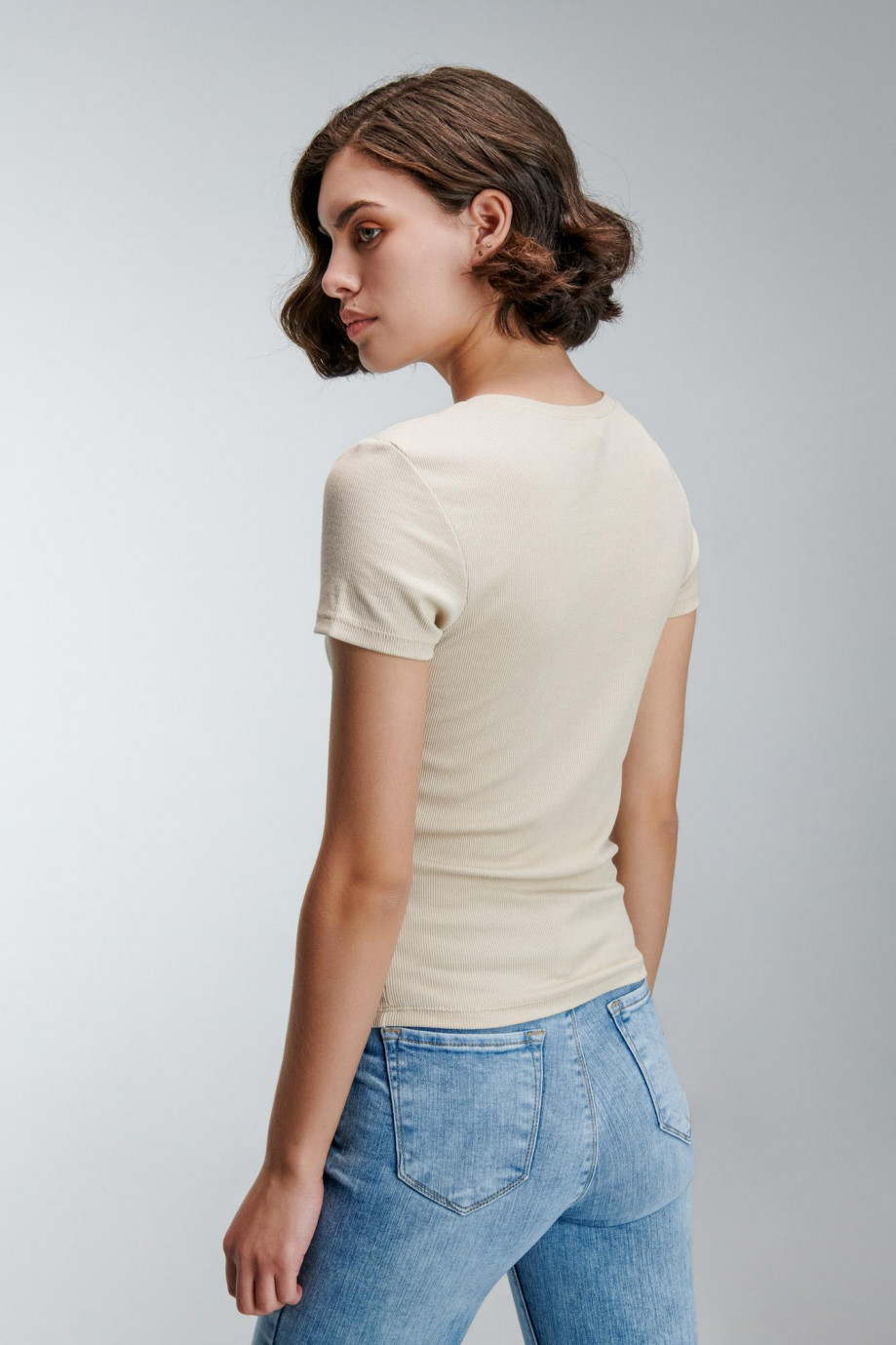 Camiseta básica para mujer, manga corta con cuello redondo.