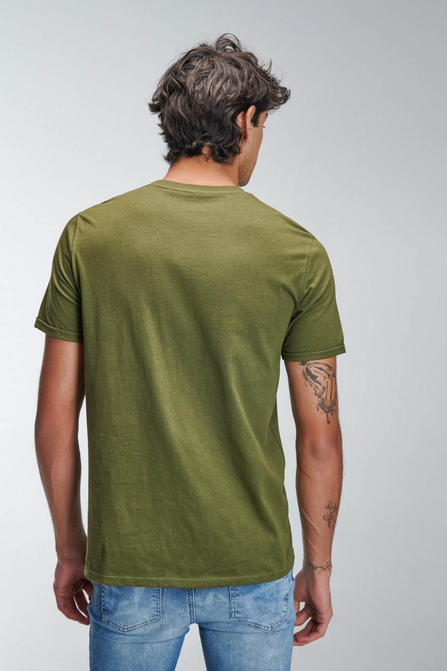 Camiseta manga corta, unicolor para hombre con costura decorativa en cuello frente.
