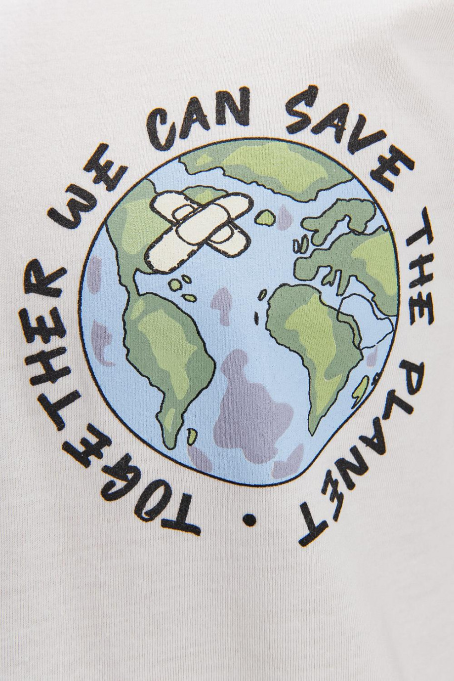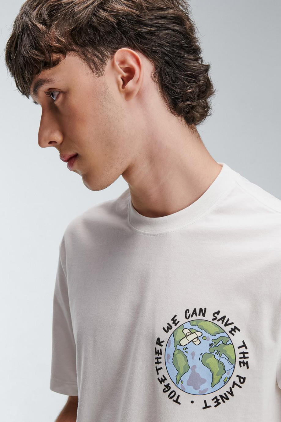 Camiseta masculina básica, cuello redondo, manga corta con estampado pequeño ubicado sobre el frente.