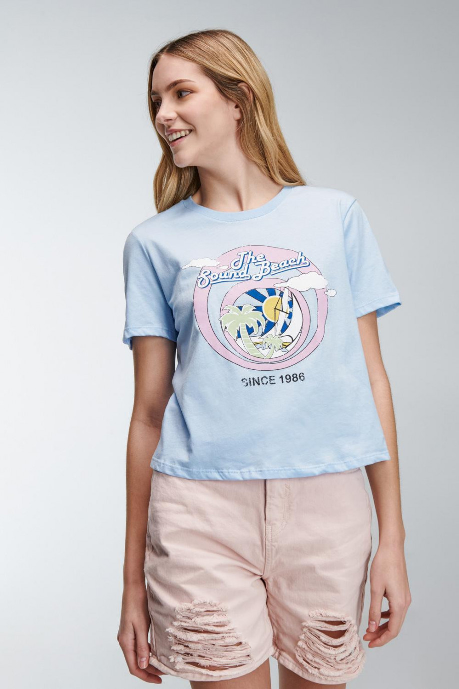 Camiseta básica para mujer manga corta, estampada en el frente.