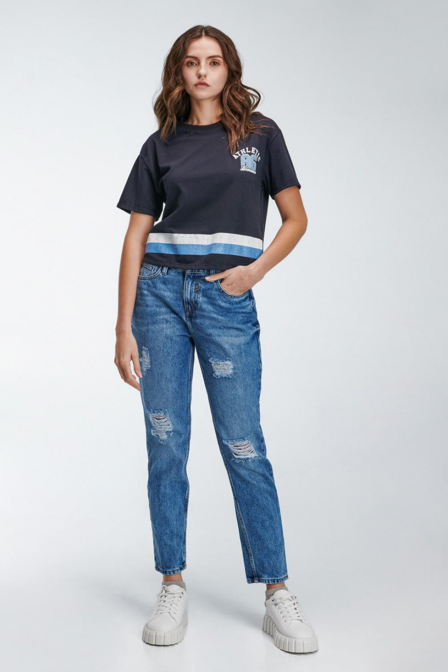 Camiseta manga corta para mujer básica, con estampado en frente.