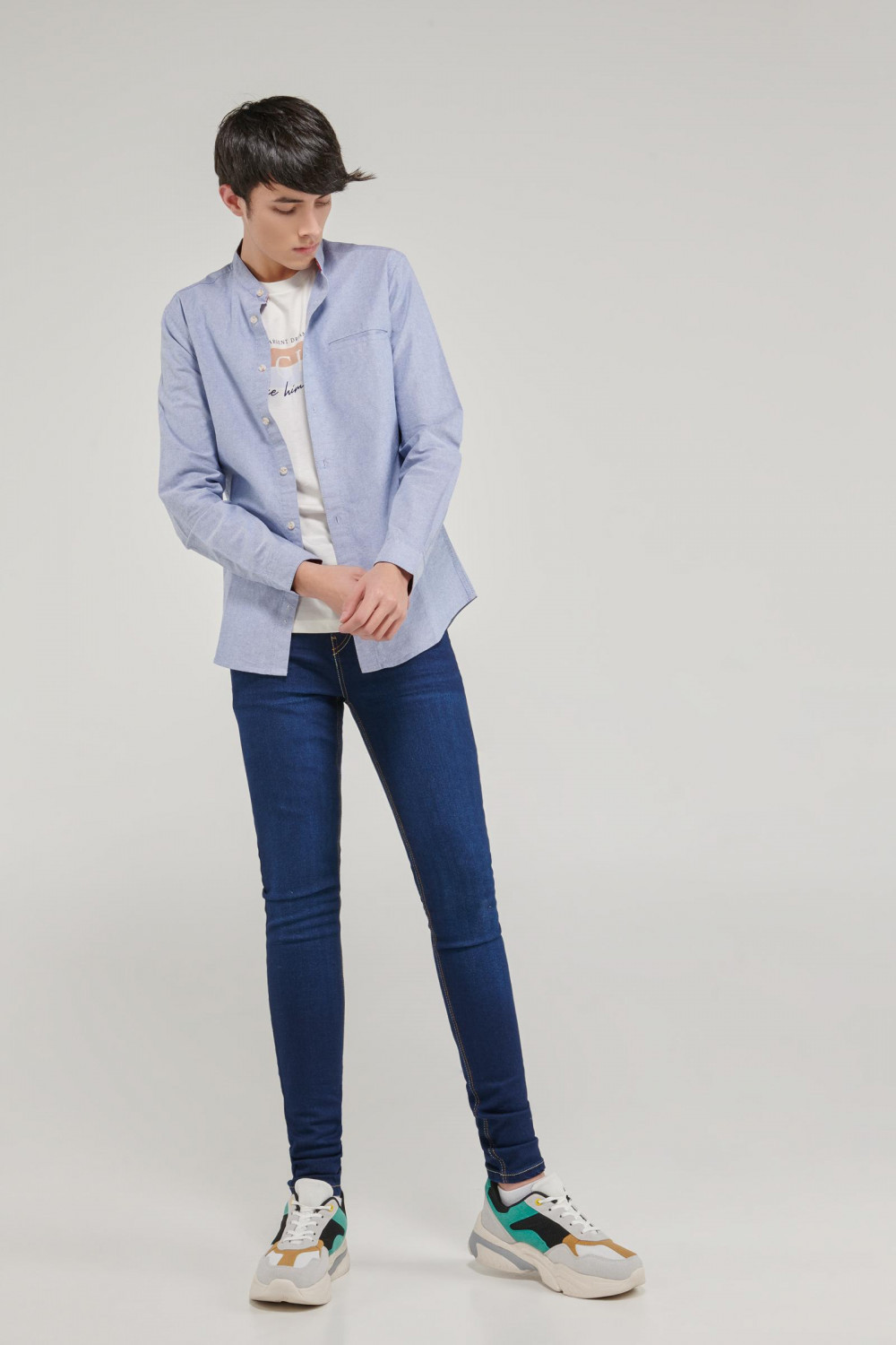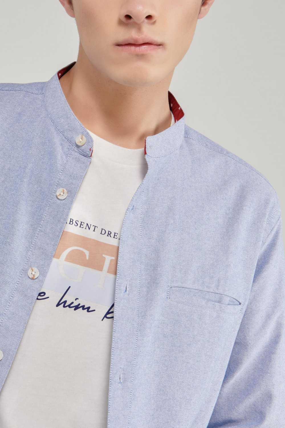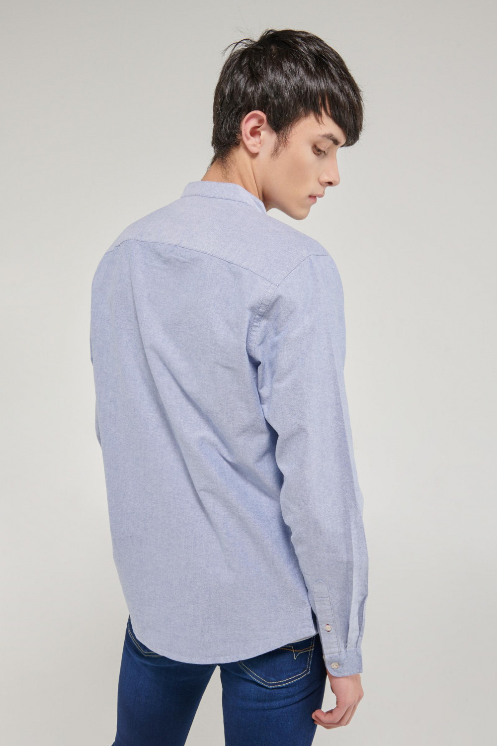 Camisa para hombre, en tela oxford unicolor con bolsillo de pestaña en delantero