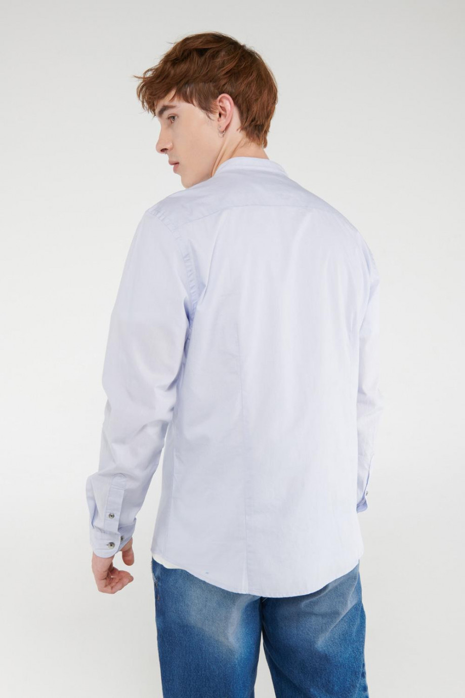 Camisa para hombre, en tela unicolor con bolsillo de pestaña