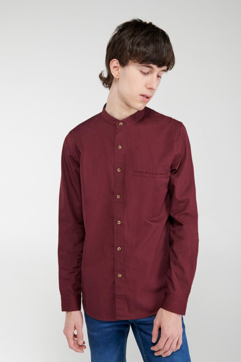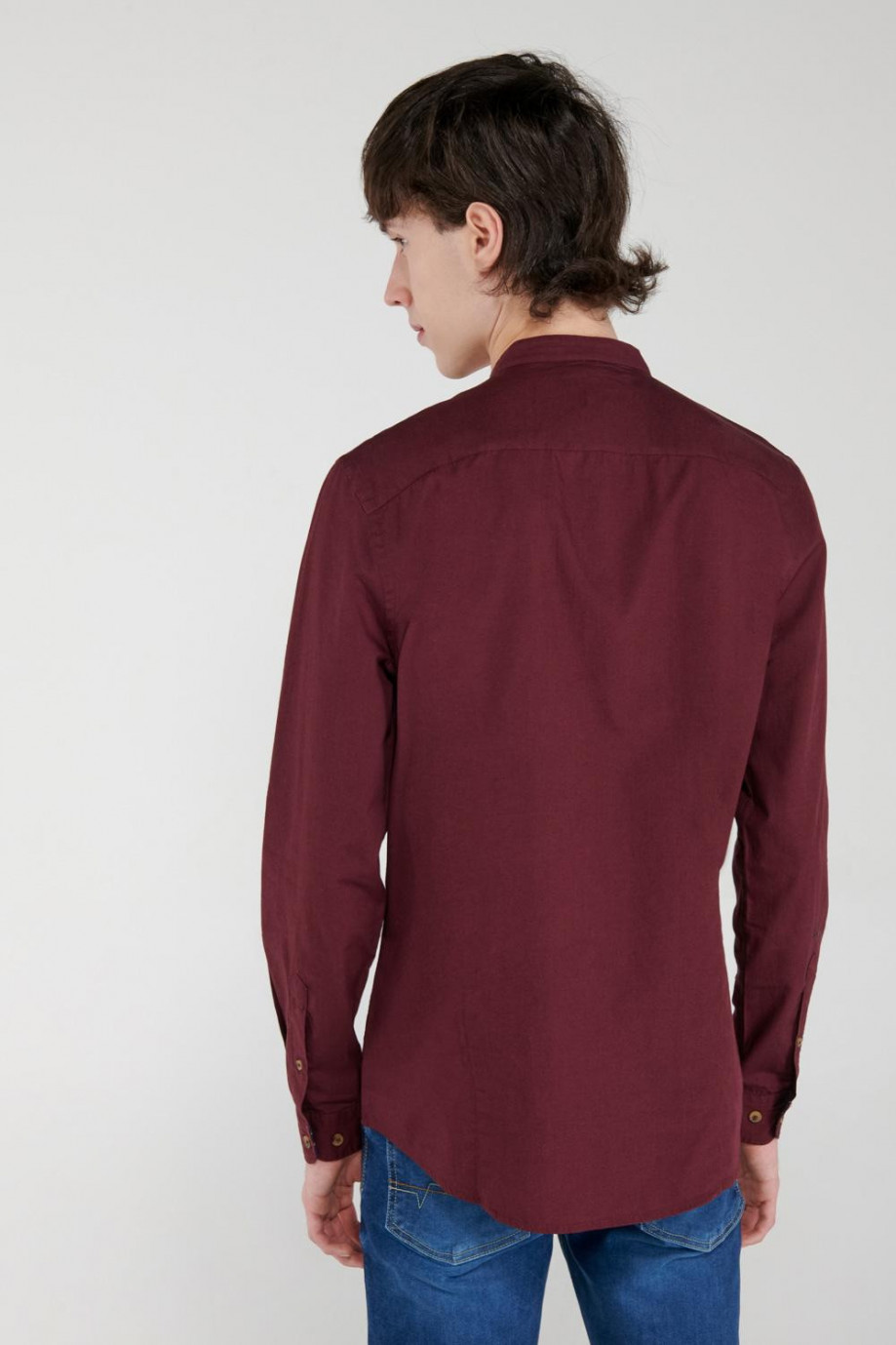 Camisa para hombre, en tela unicolor con bolsillo de pestaña