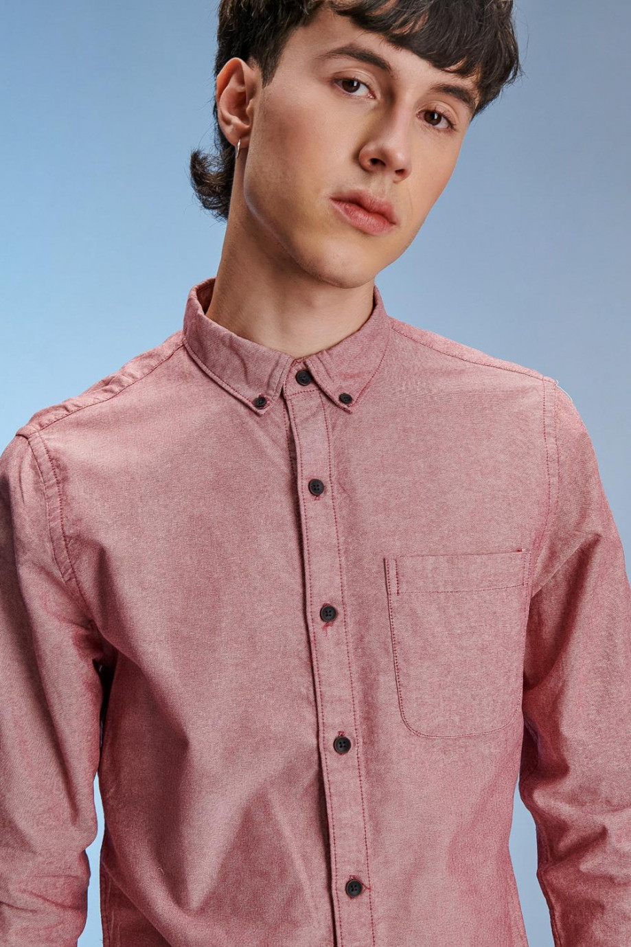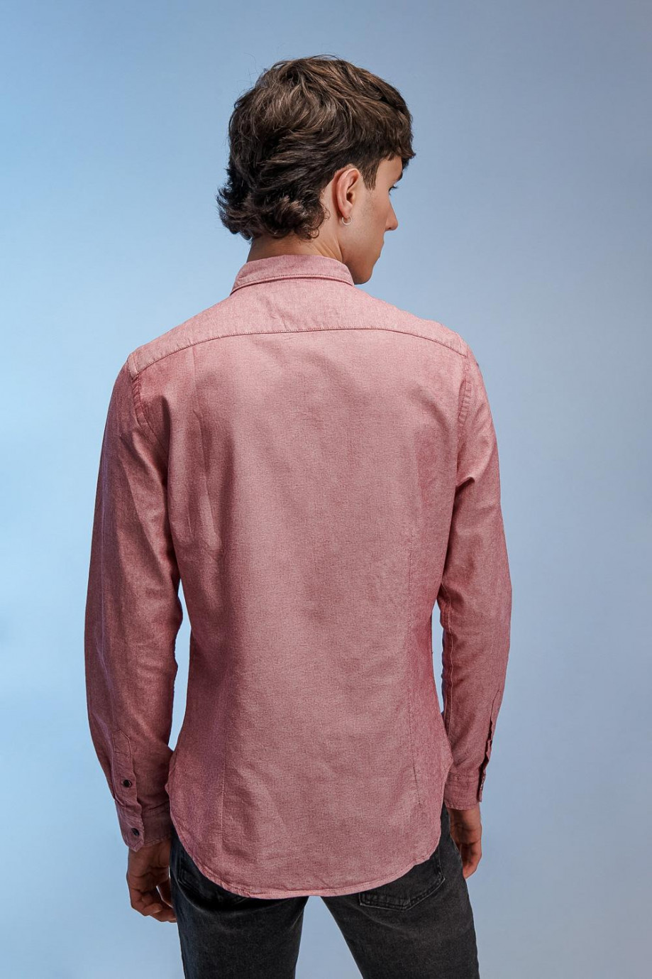 Camisa para hombre, en tela oxford unicolor con bolsillo delantero y marquilla decorativa en frente
