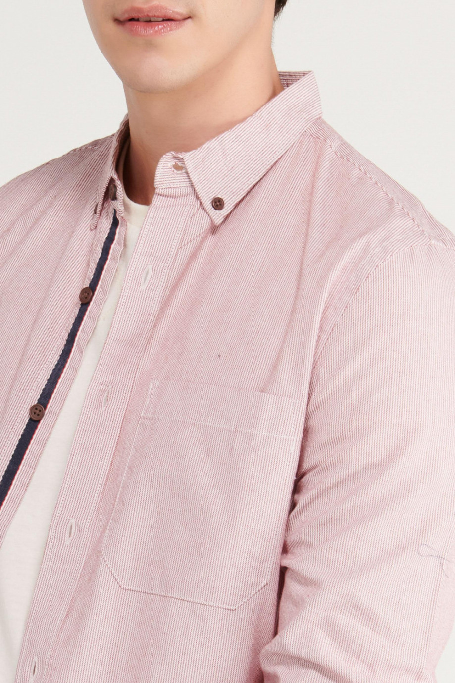 Camisa para hombre, tela de cuerpo a rayas con bolsillo delantero y cuello button down