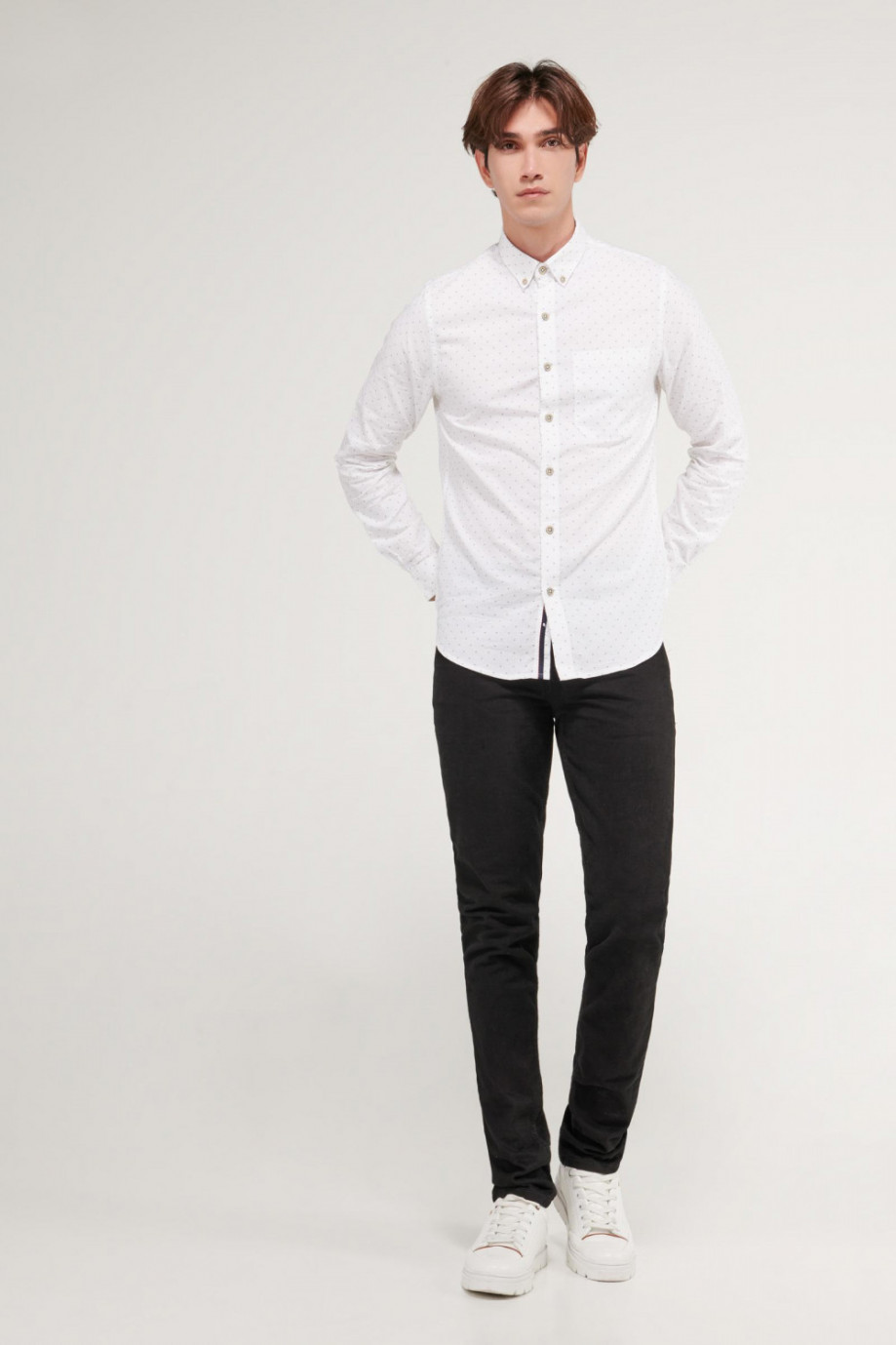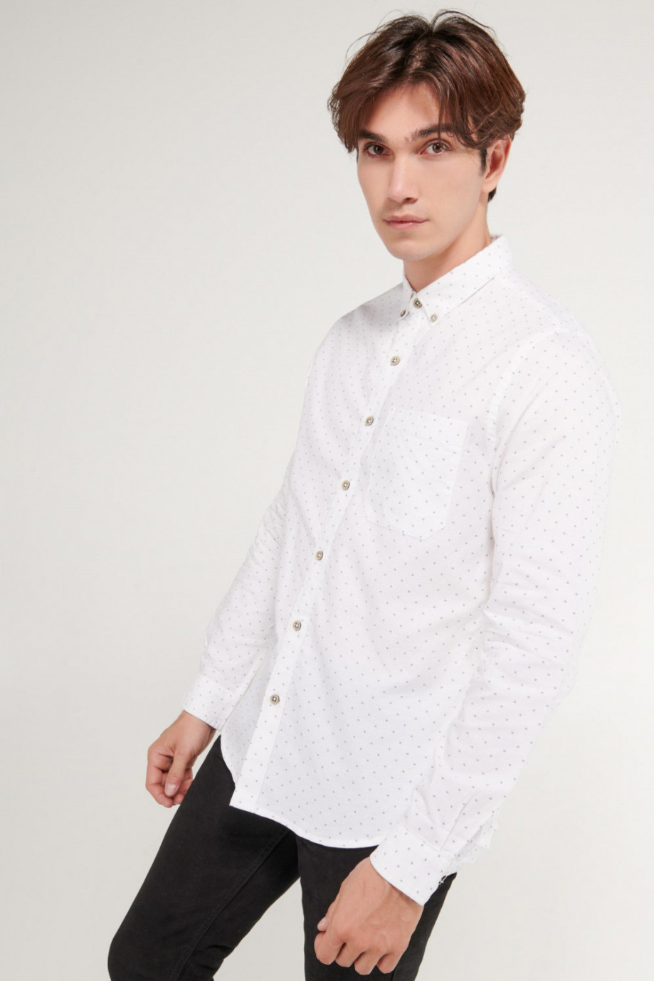 Camisa para hombre, en tela oxford estampada con bolsillo delantero
