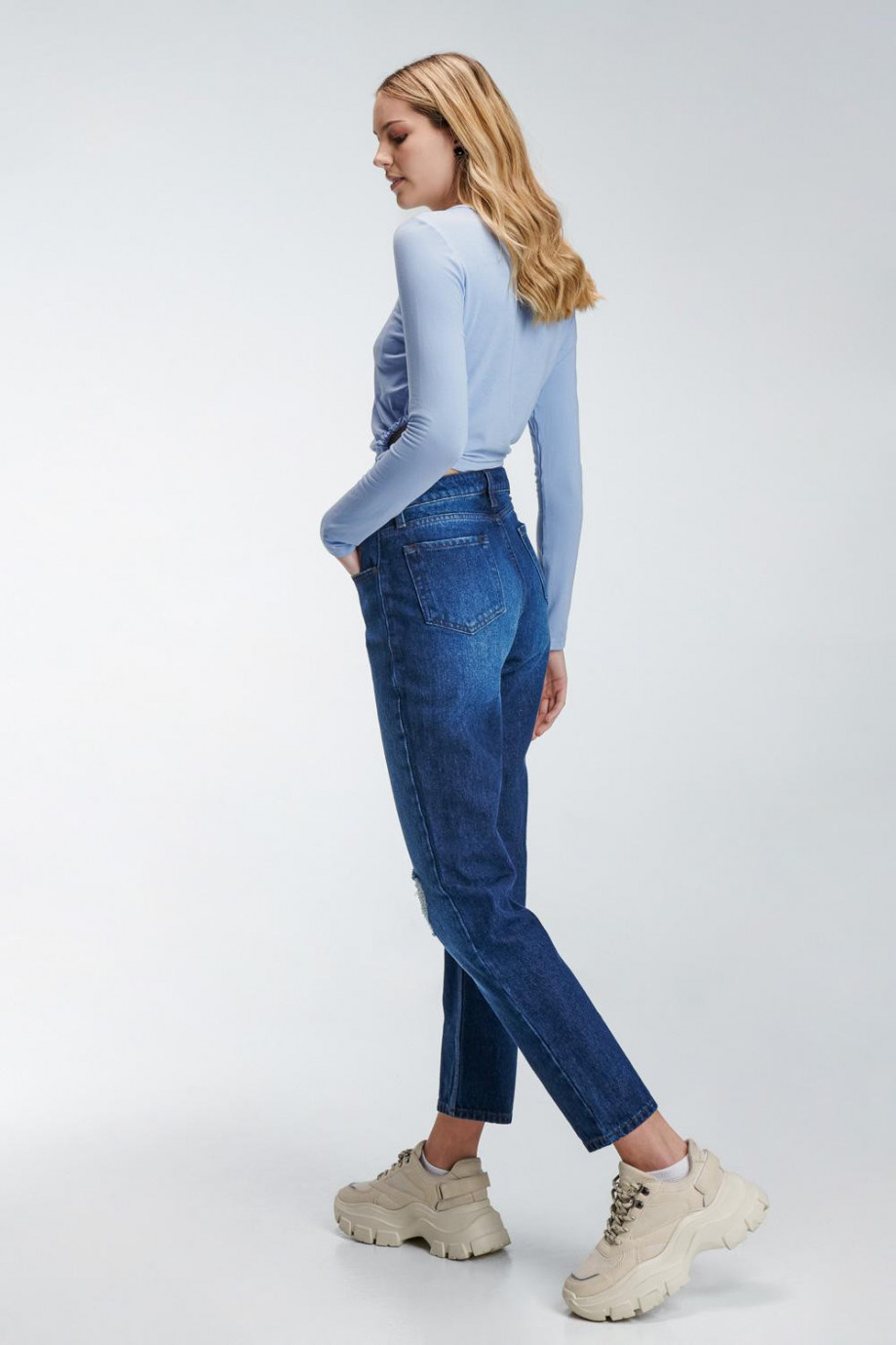 Camiseta sin estampado, manga larga, con cruce detalle de recogido y anudado en costados, ruedo en “V”