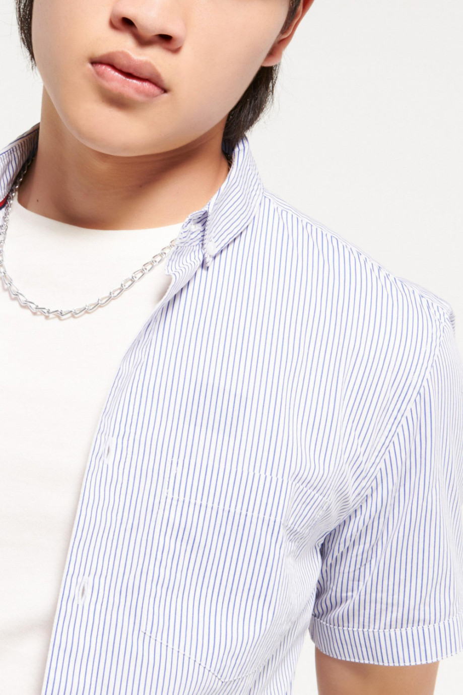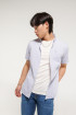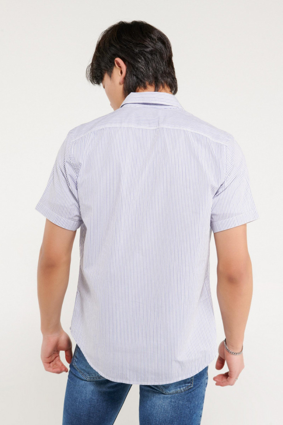 Camisa para hombre, en tela a rayas, cuello button down, bolsillo en frente