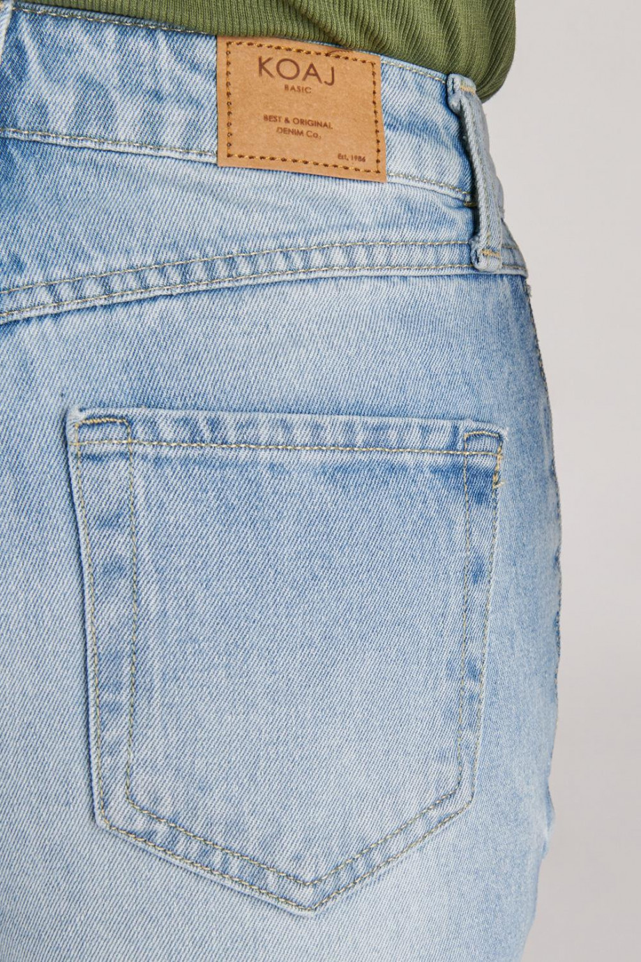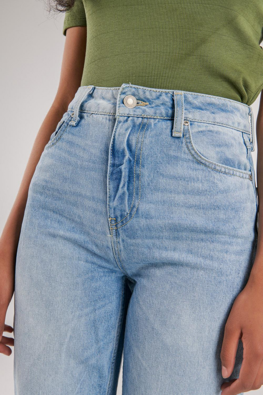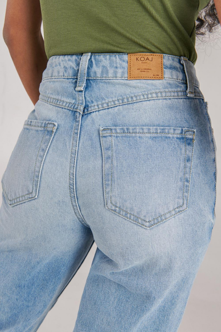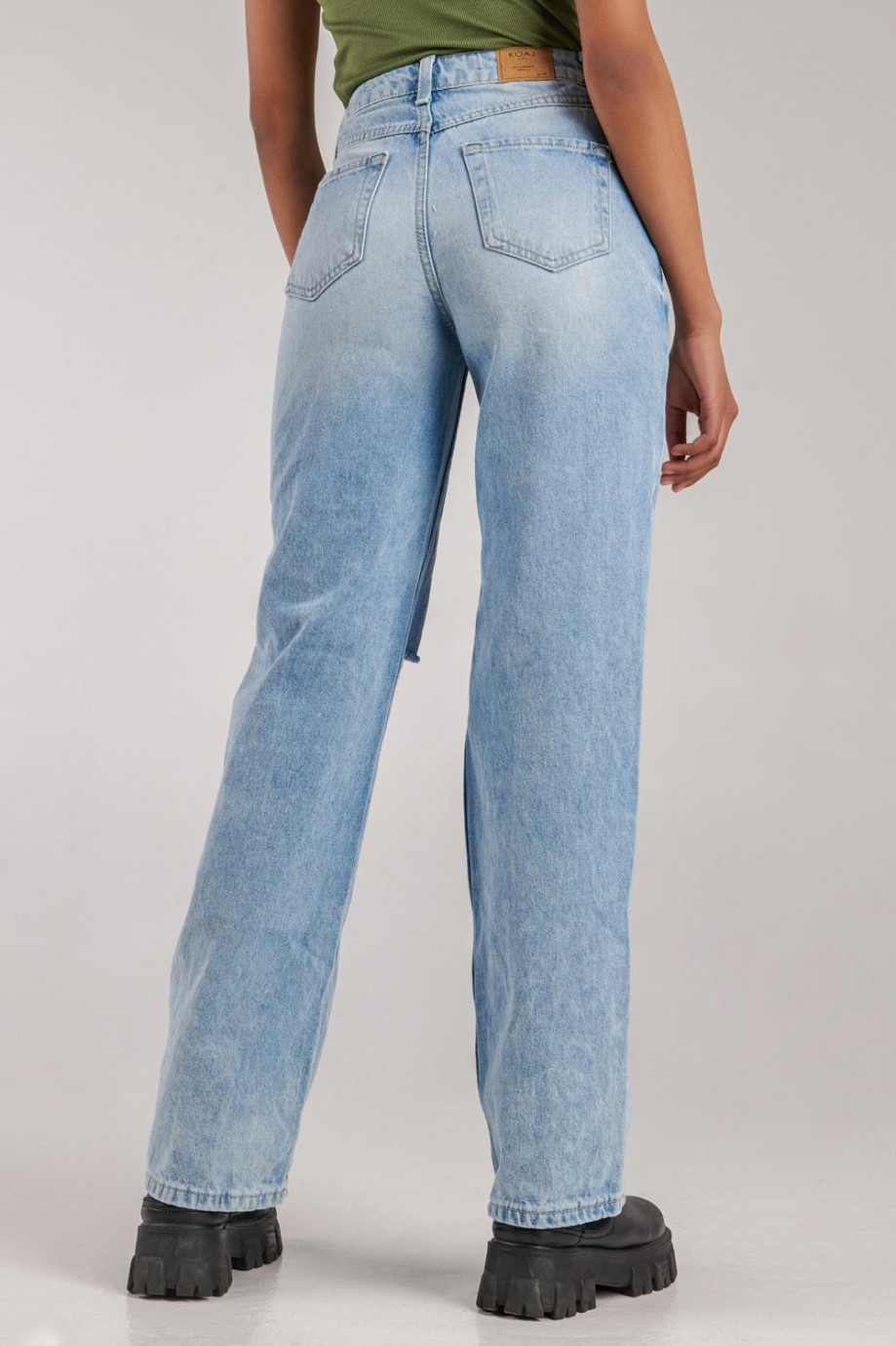 Jean para mujer, 5 bolsillos, super tiro alto, lavado con rotos color azul muy claro