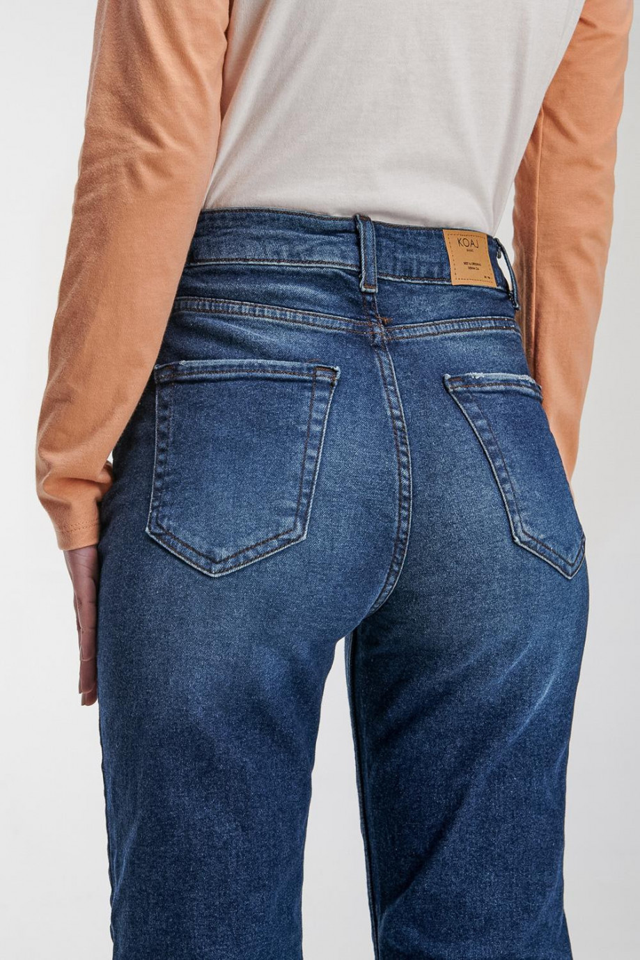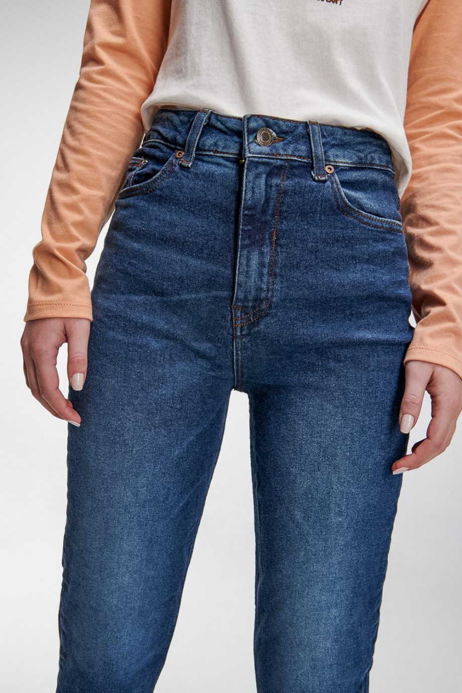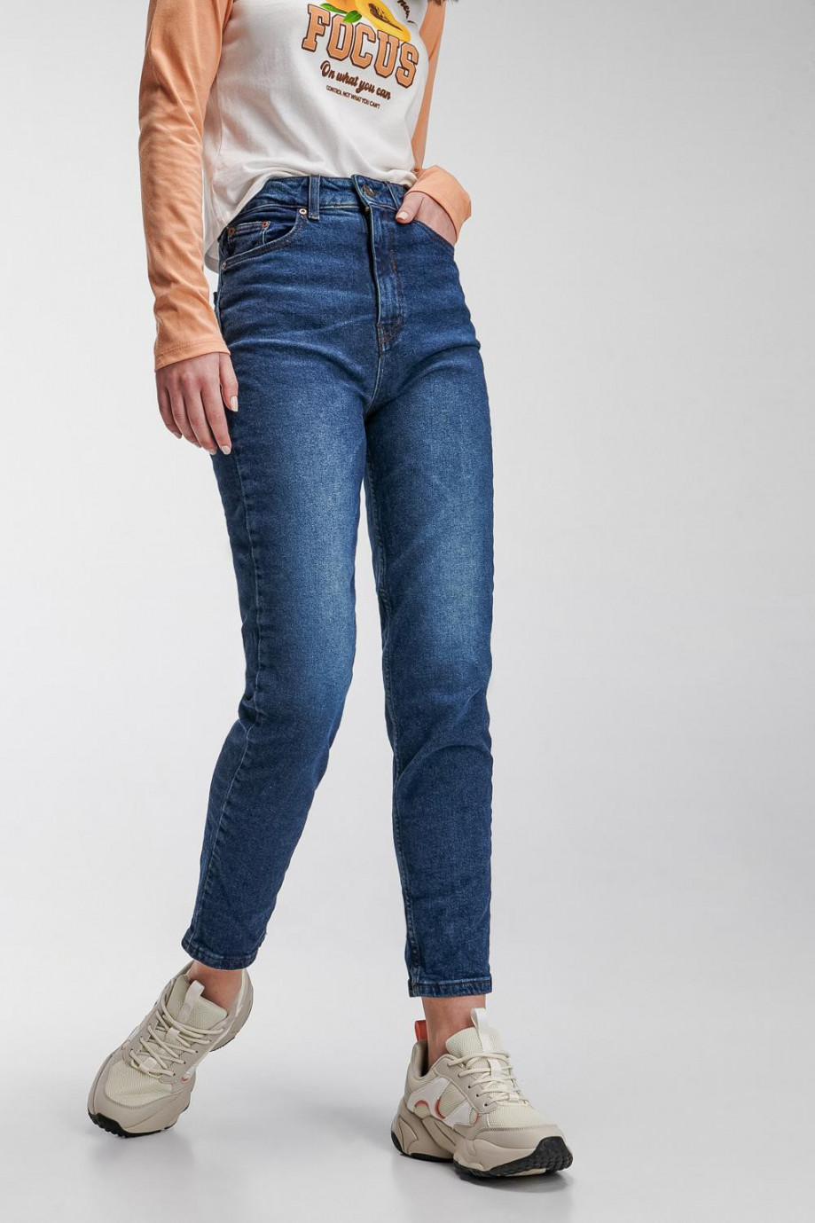 Jean mom fit para mujer, 5 bolsillos, super tiro alto, con proceso gris