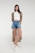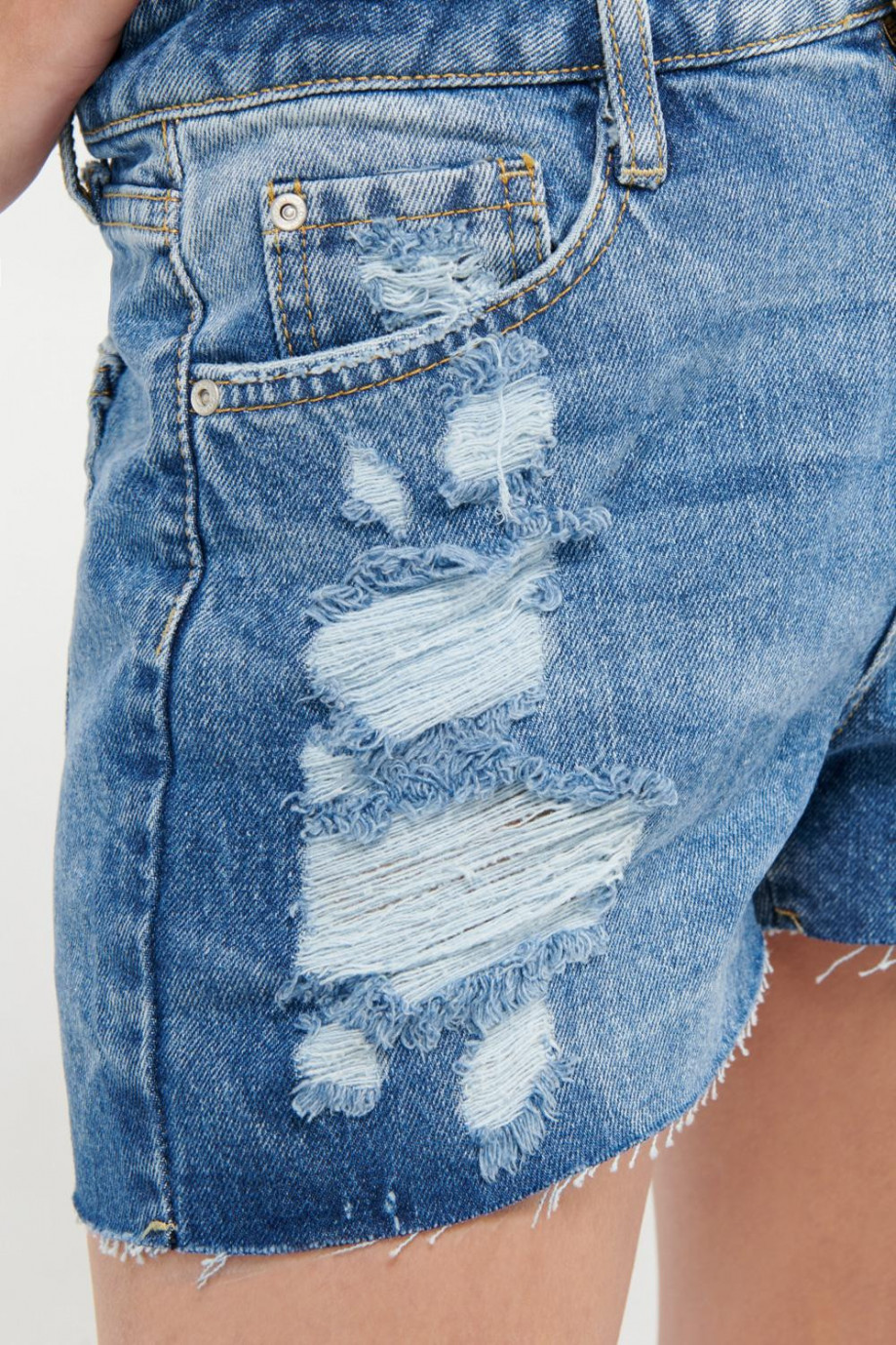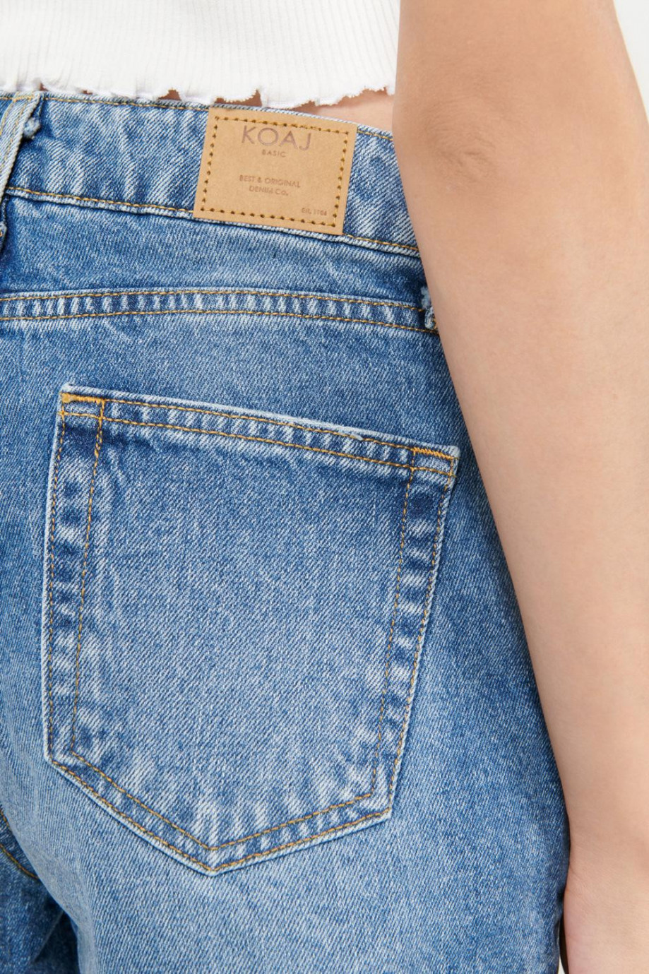 Short para mujer, 5 bolsillos, tiro alto, con lavado claro.