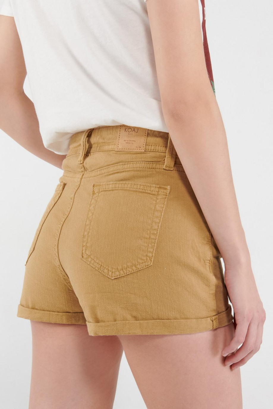 Short para mujer, 5 bolsillos,  en tela de cuerpo unicolor, tiro alto