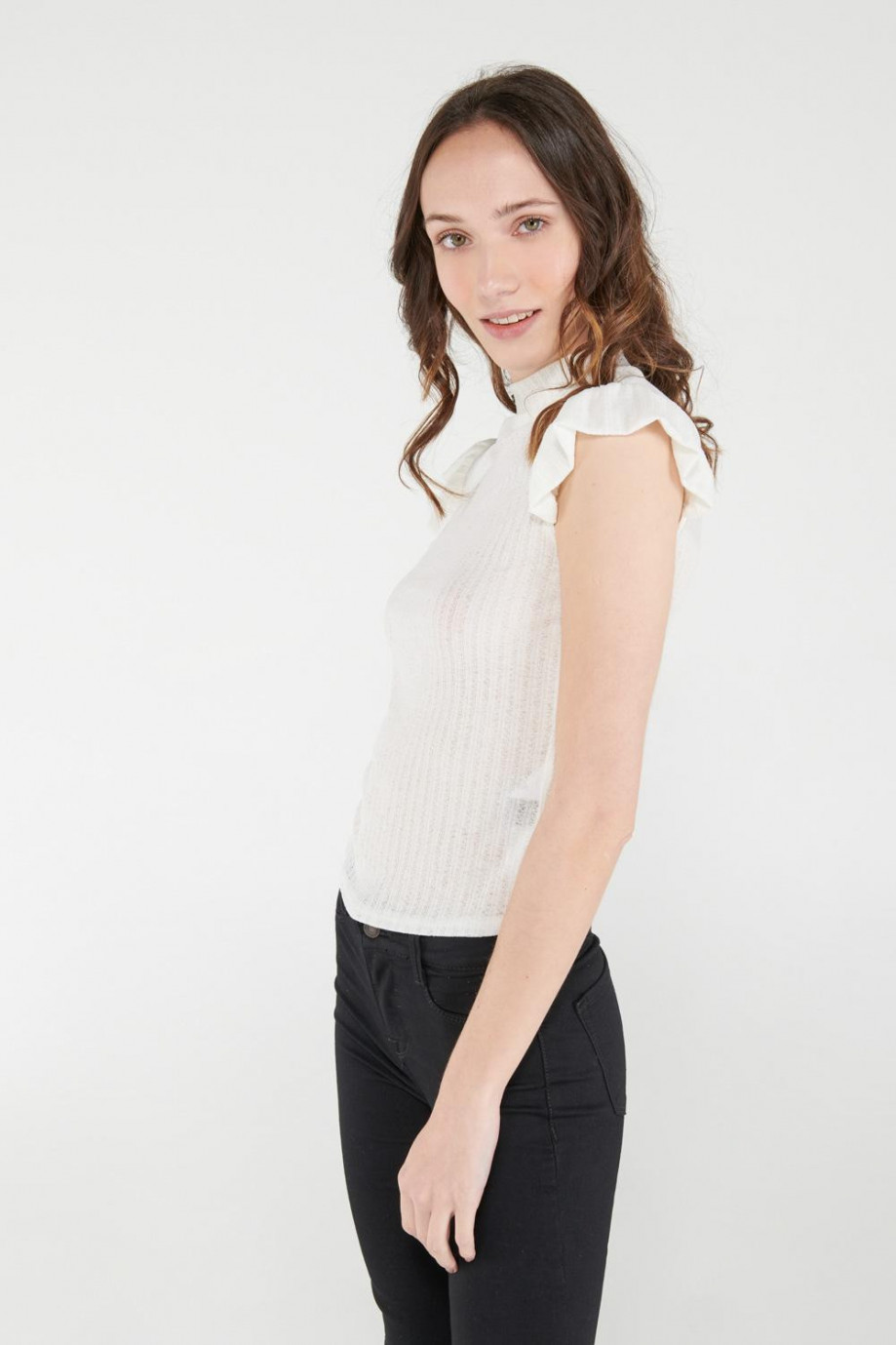 Camiseta manga sisa para mujer con tela importada, chic, con detalle en mangas
