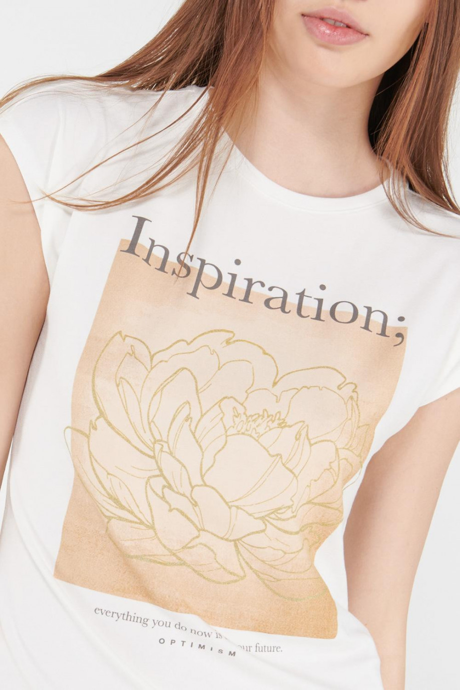 Camiseta cuello redondo para mujer, sin mangas con estampado y perlas.