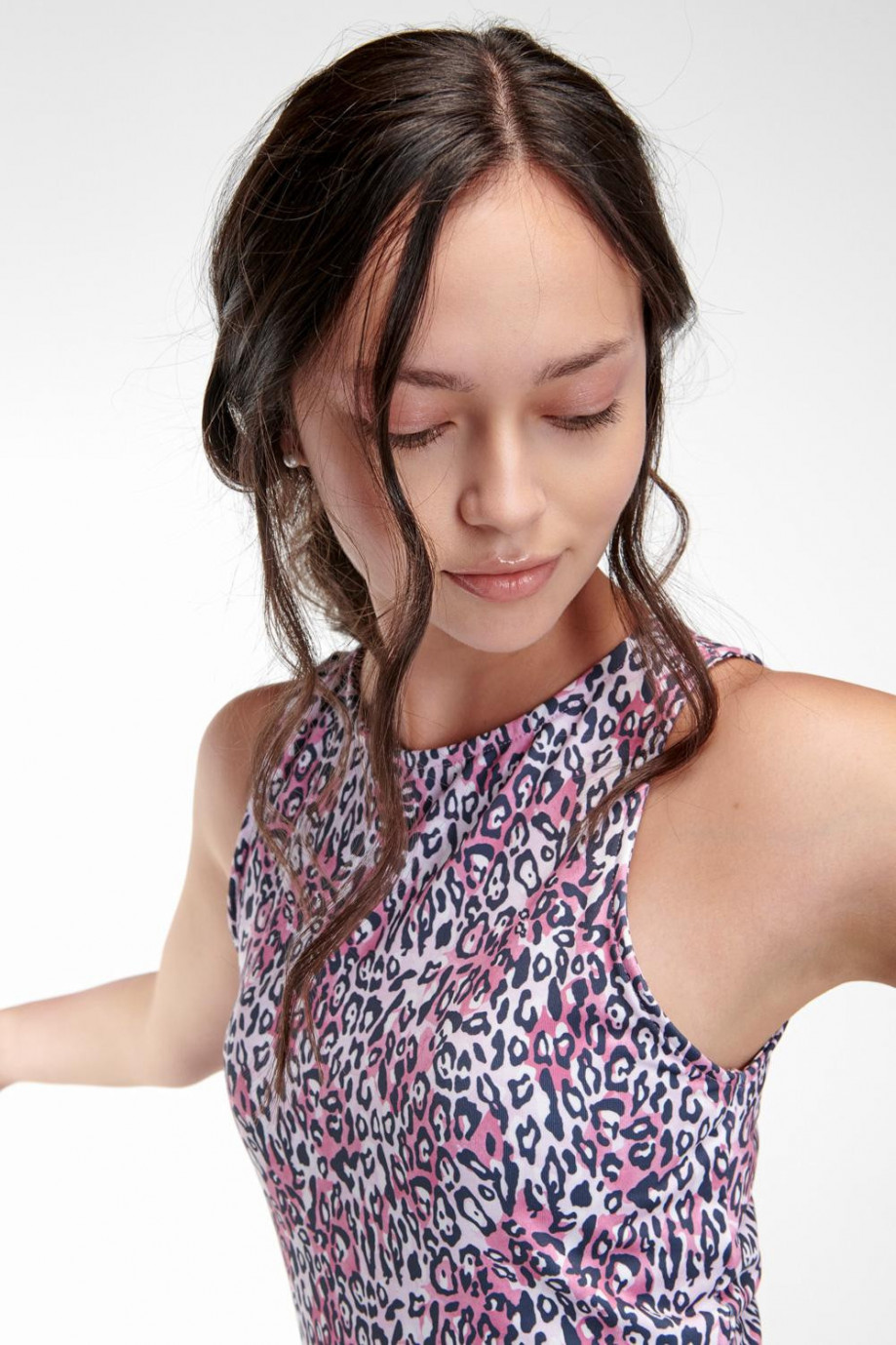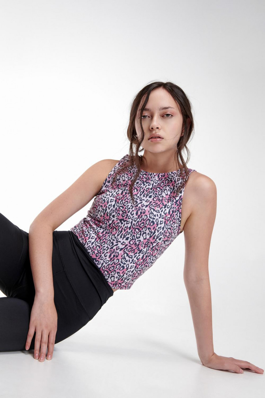 Camiseta Fit para mujer, manga sisa, cuello redondo.