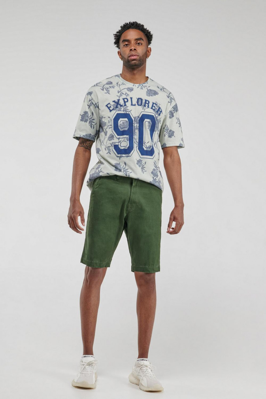 Bermuda para hombre, en tela de cuerpo unicolor, bolsillos de ribete y ajuste holgado.
