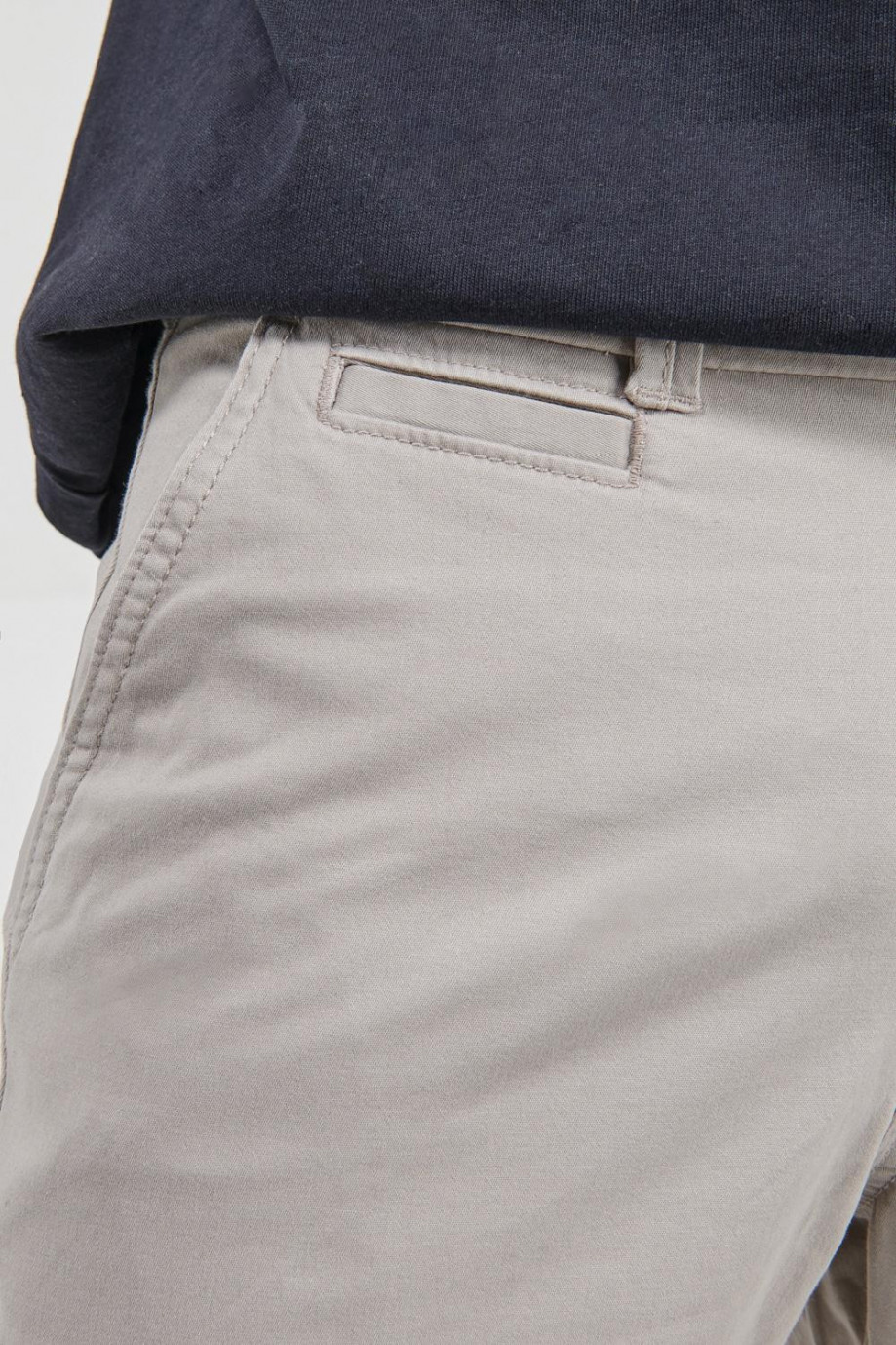 Bermuda para hombre, en tela de cuerpo unicolor, bolsillos de ribete y ajuste holgado.