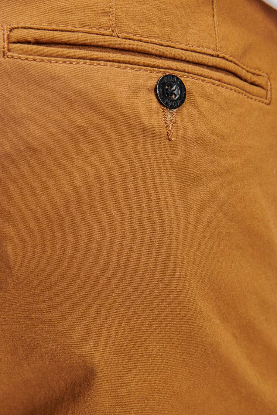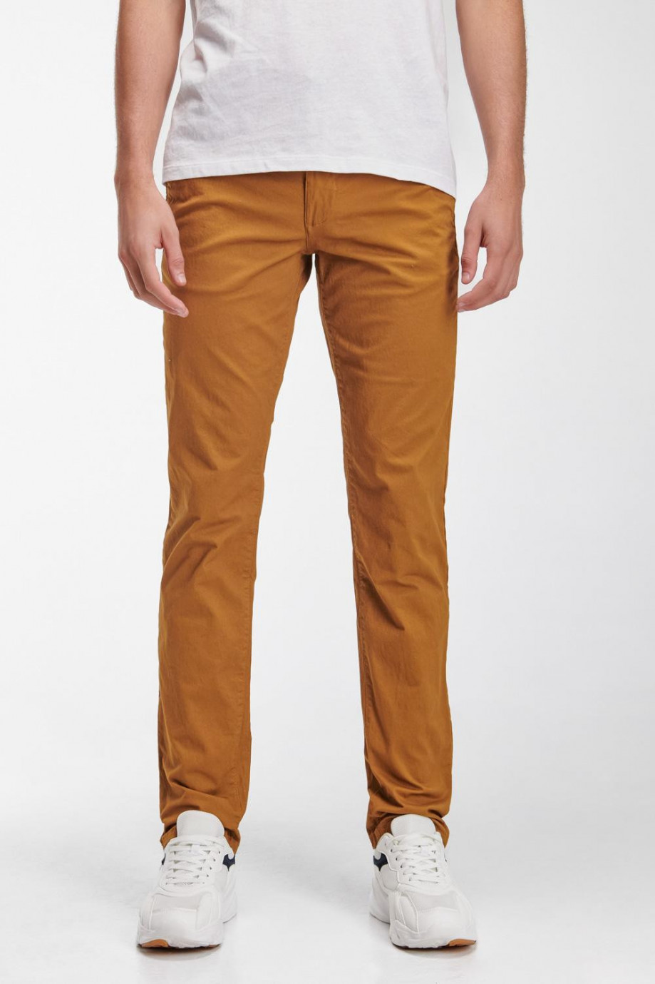 Pantalon para hombre, en tela de cuerpo unicolor, con tiro medio, bolsillos verticales, y slim fit.