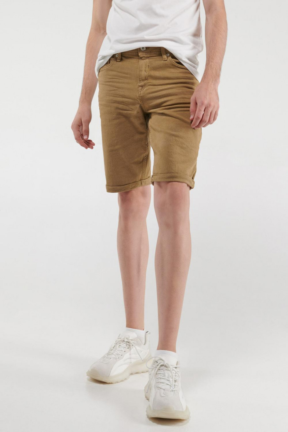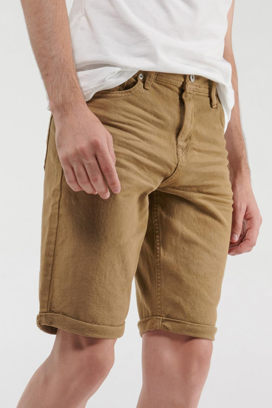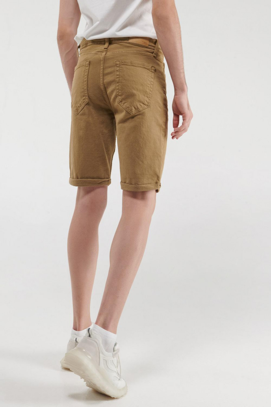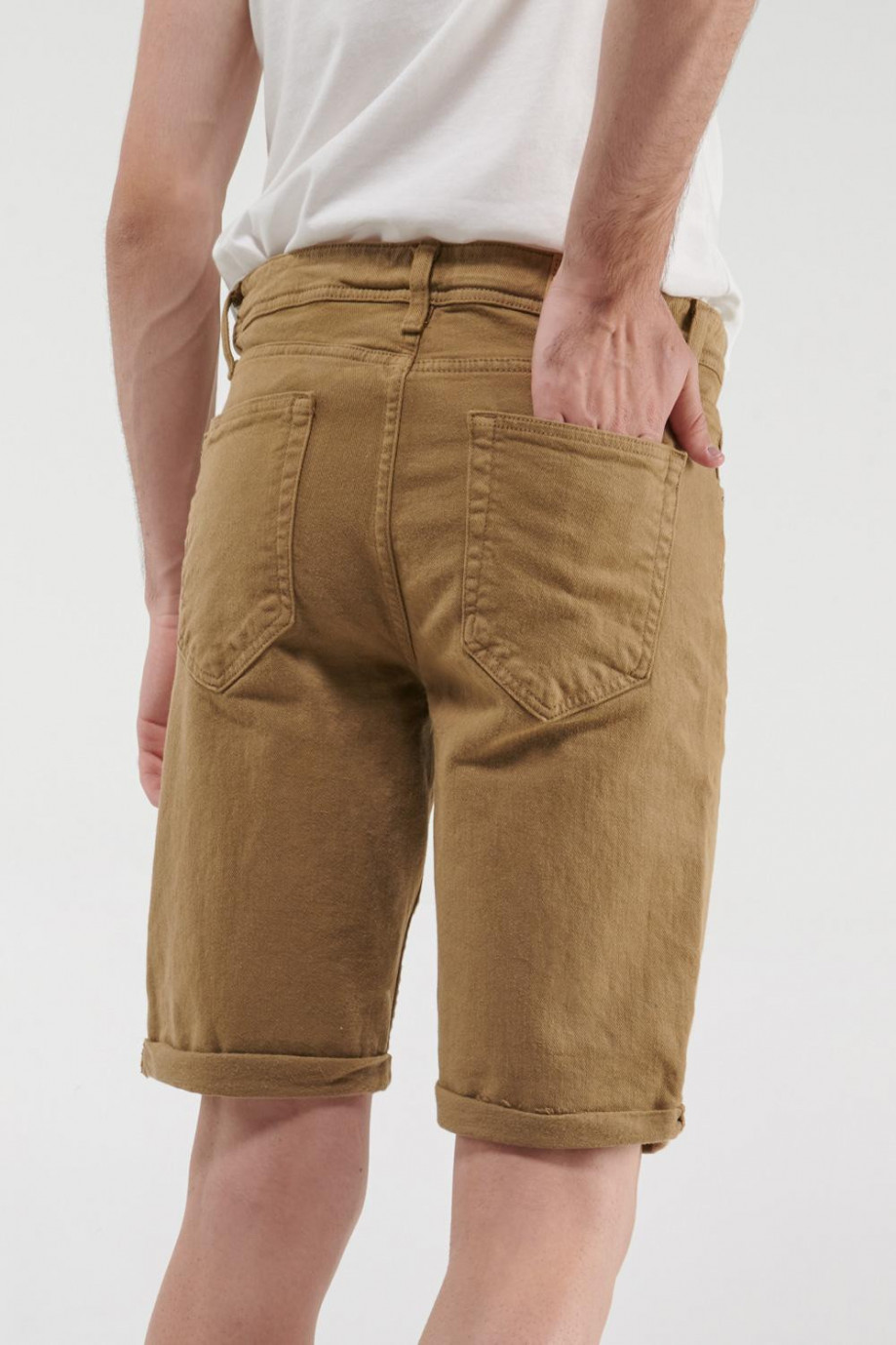 Bermuda para hombre en tela unicolor, 5 bolsillos, tiro bajo.