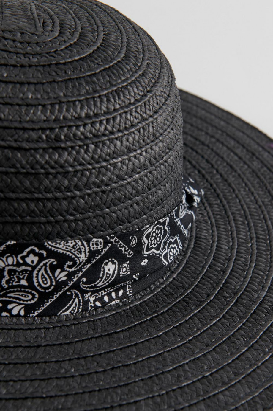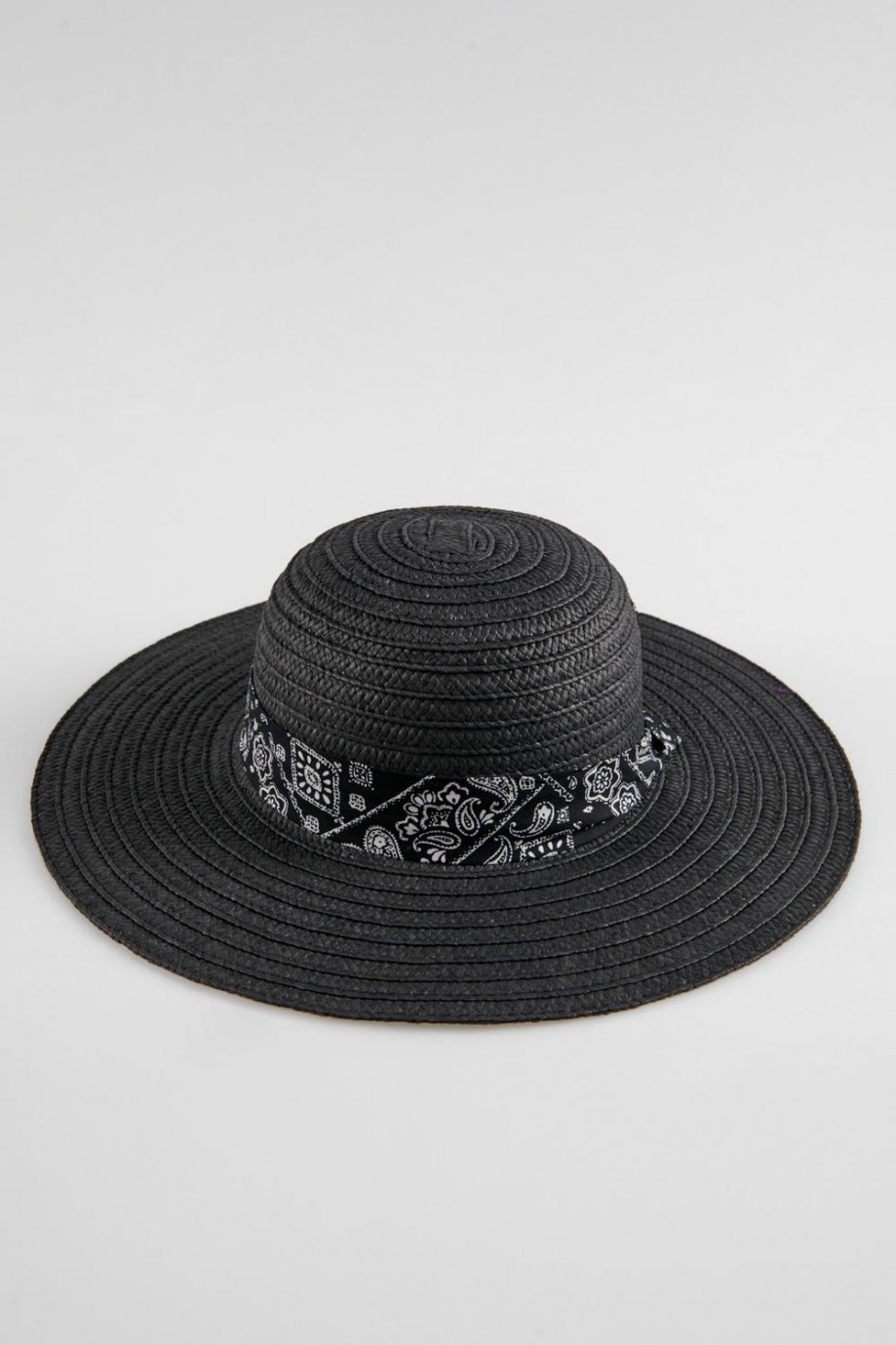 Sombrero para mujer con cinta estampada ala ancha.