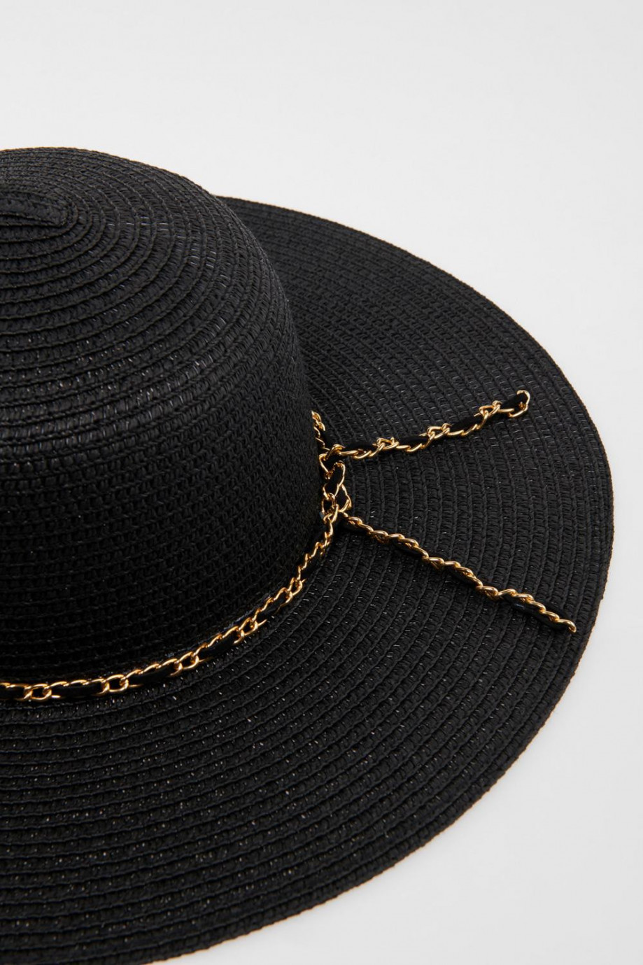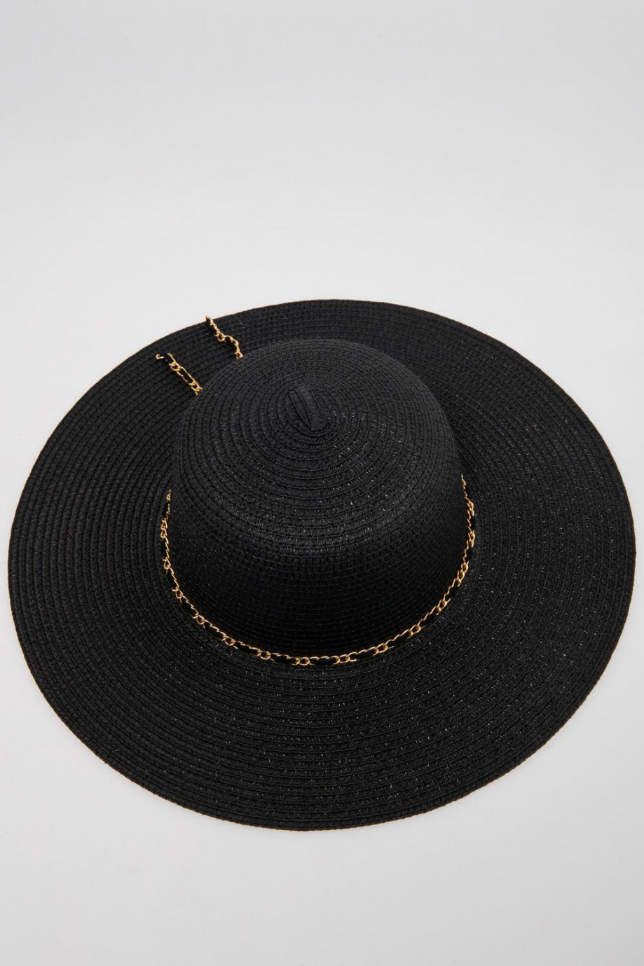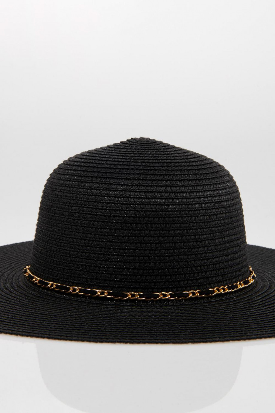 Sombrero para mujer, de papel con cinta decorativa unicolor.