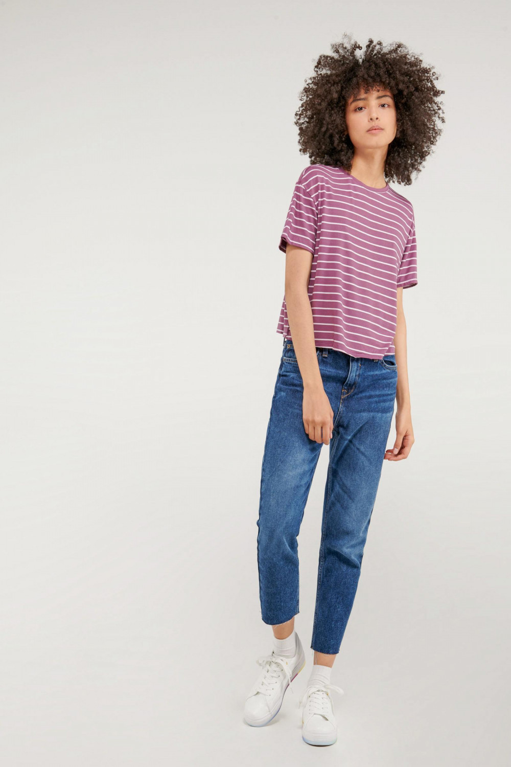Camiseta básica para mujer, manga corta con cuello redondo.