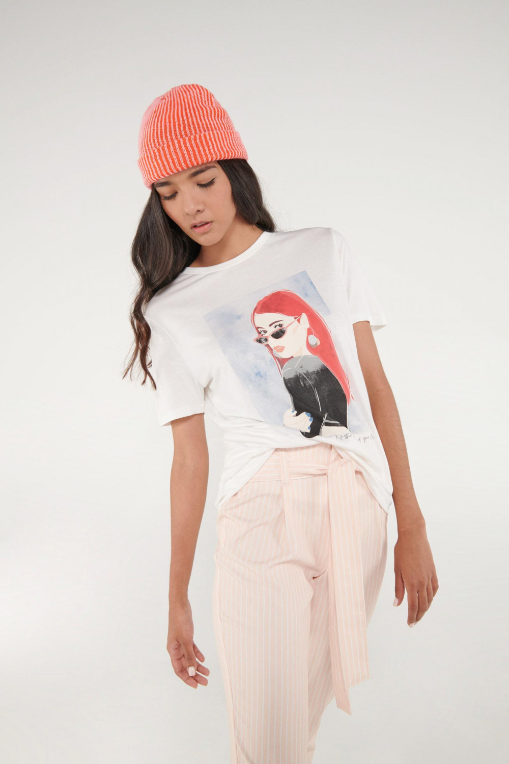 Camiseta básica para mujer manga corta con estampado jeanswear.