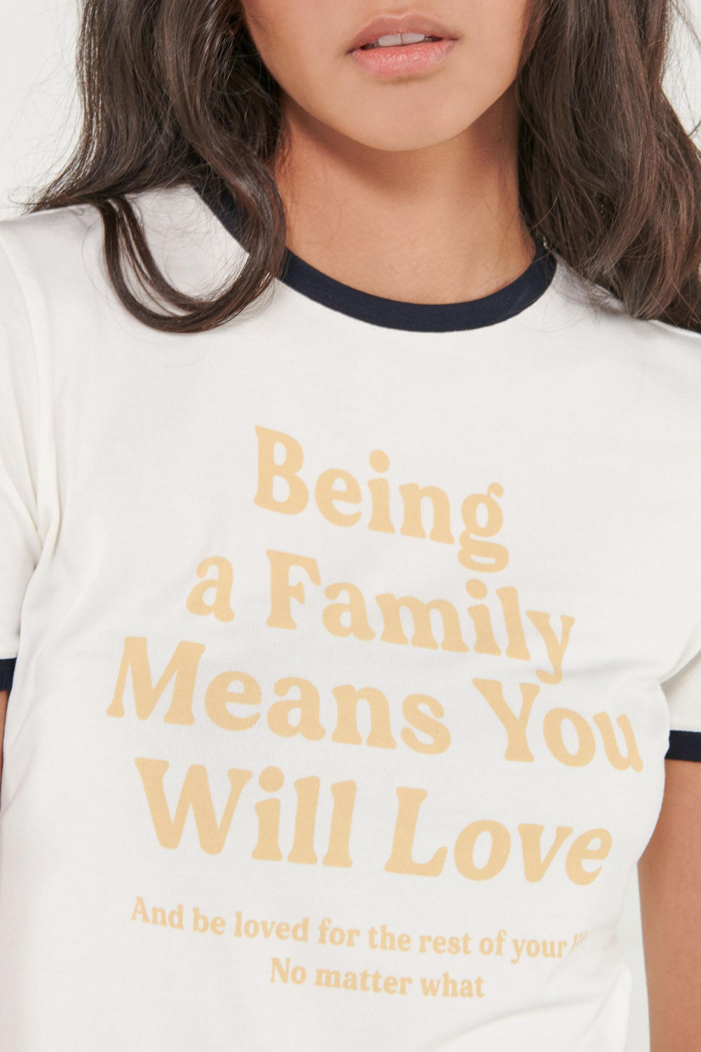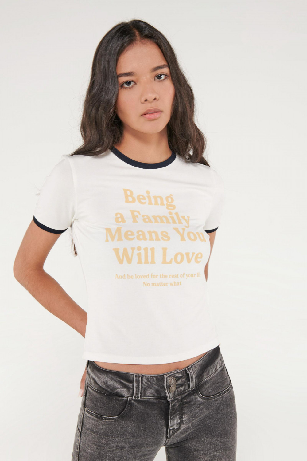 Camiseta cuello redondo para mujer, manga corta con puño en contraste, con estampado.