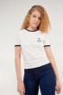 Camiseta cuello redondo para mujer, manga corta con puño en contraste, con estampado.